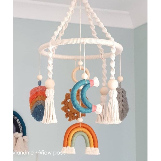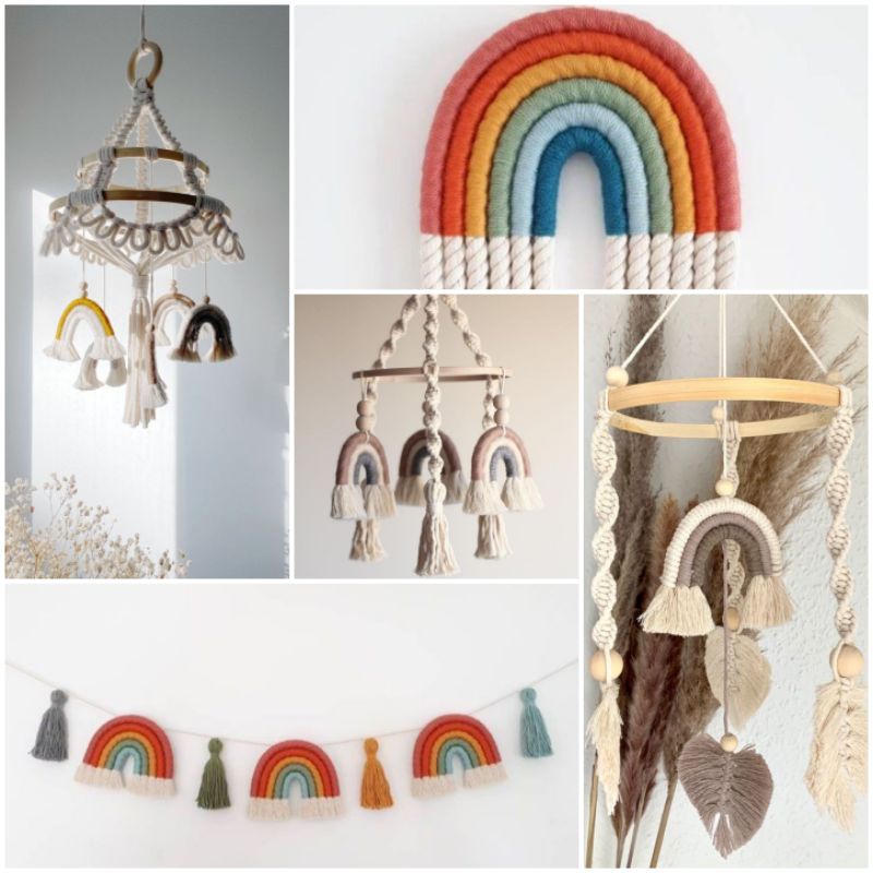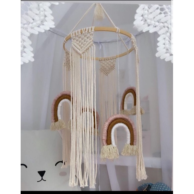 Baby mobile macrame, rainbow macrame, macrame banner hiasan pajangan dinding lucu makrame rainbow, hiasan dinding kamar anak, hiasan kamar anak, wall hanging children room