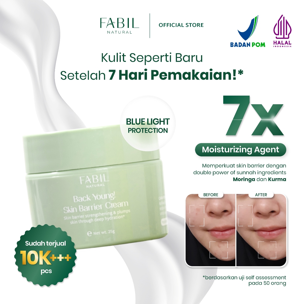 Back Young Skin Barrier Cream - Moisturizer Wajah Bikin Lembab Lembut Dan Glowing Meredakan Iritasi Tidak Lengket Cepat Meresap Kandungan Moringa Kurma Ceramide Niacinamide Peptide CICA Mini HA - Lulus BPOM Halal