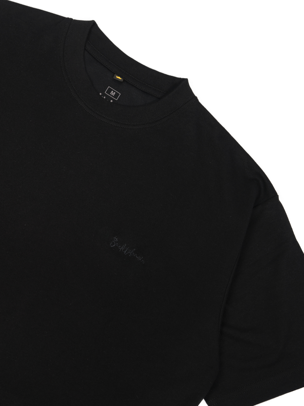 BACKTOBASIC Signature - Kaos Oversize Hitam Unisex | Micro Cotton Danbowl 200 GSM | Bordir Minimal | Tebal Premium, Tidak Terawang | CleanLook | S-XXL