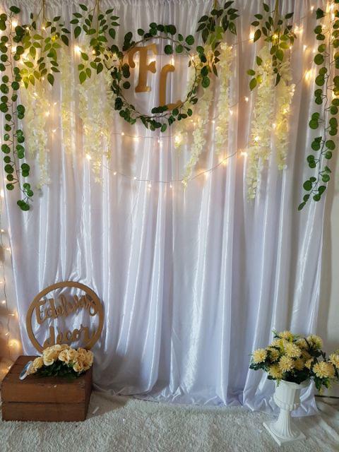 Backdrop photobooth lamaran atau nikahan (putih polos)