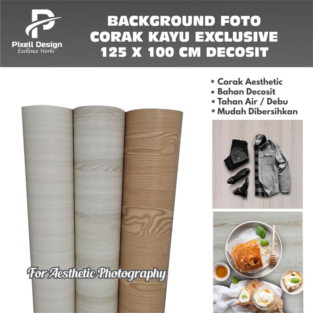 Background Foto / Alas Foto Decosit Corak Kayu 125 x 100 cm Waterproof