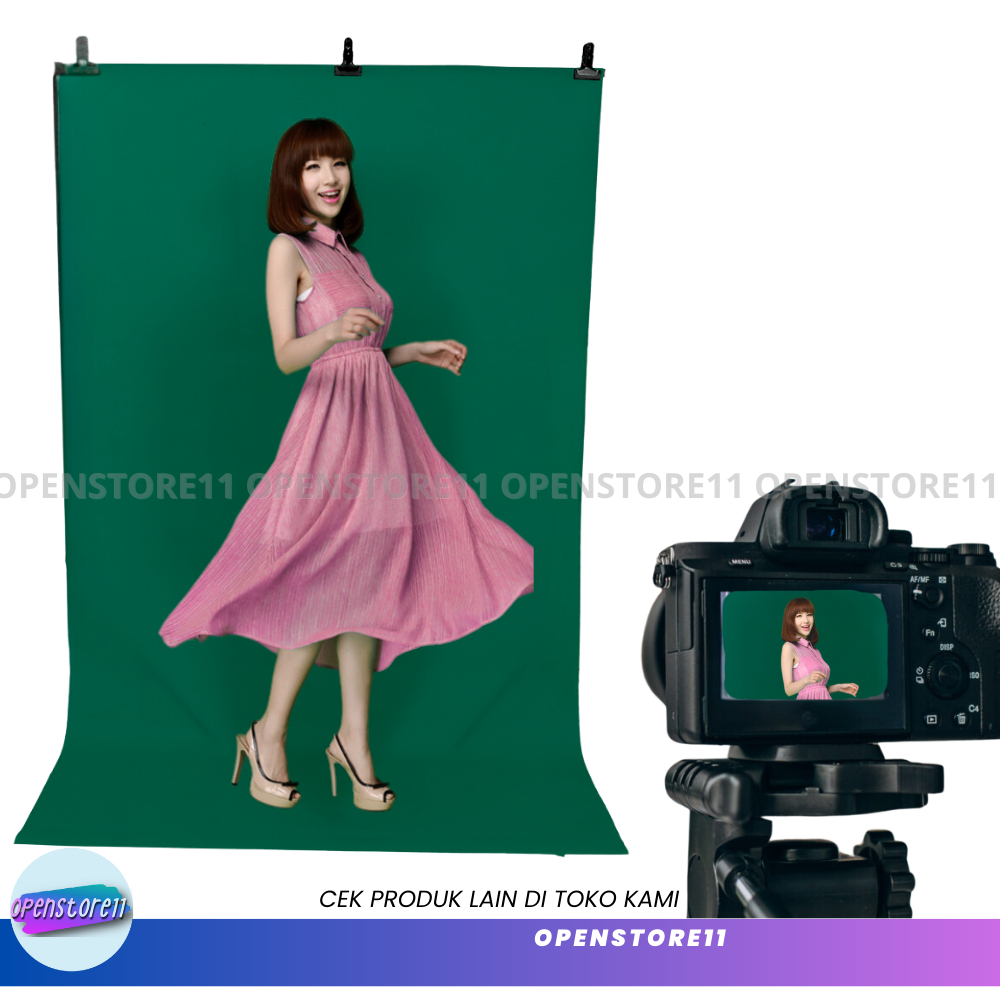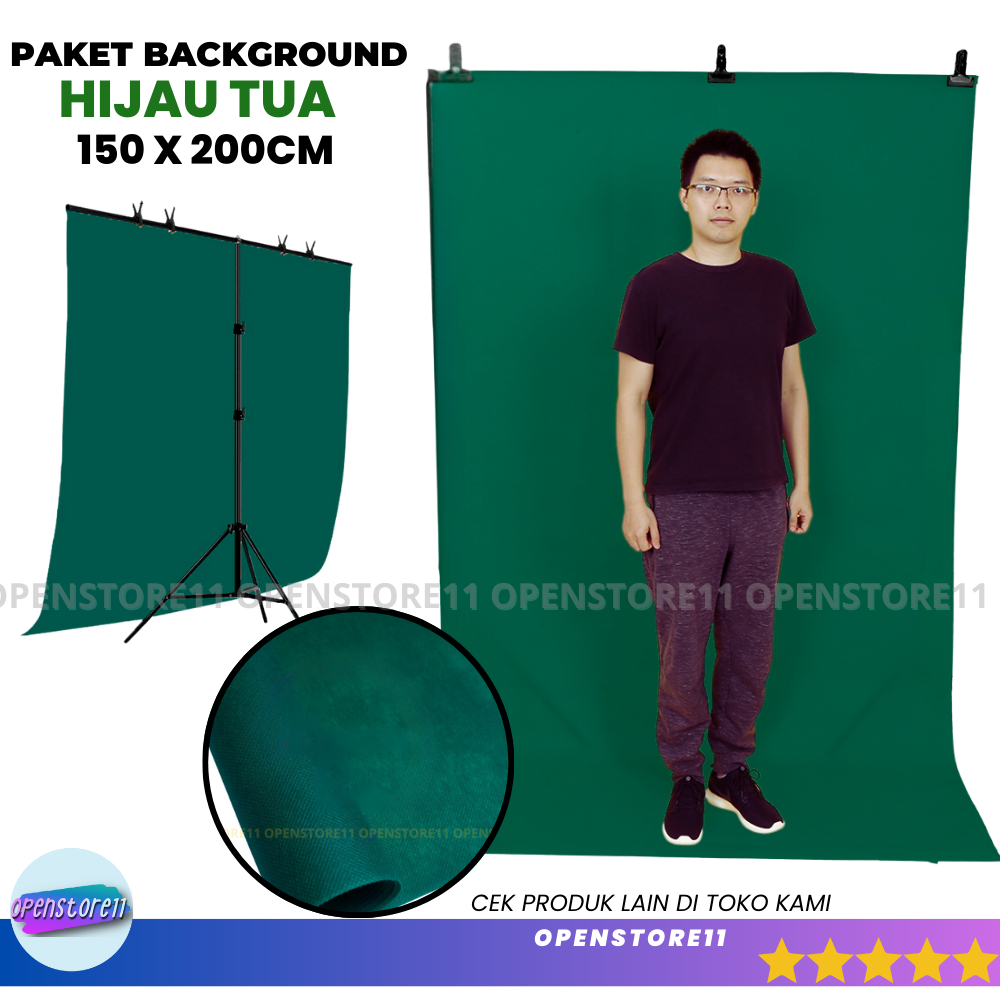 Background Foto Studio Hijau with Stand Tripod Backdrop 2 Meter