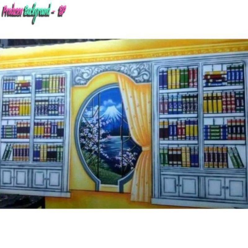 Background Wisuda Rak Buku 3x6m Studio Photo Backdrop