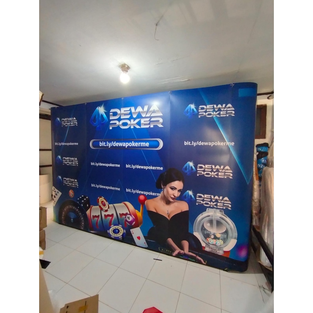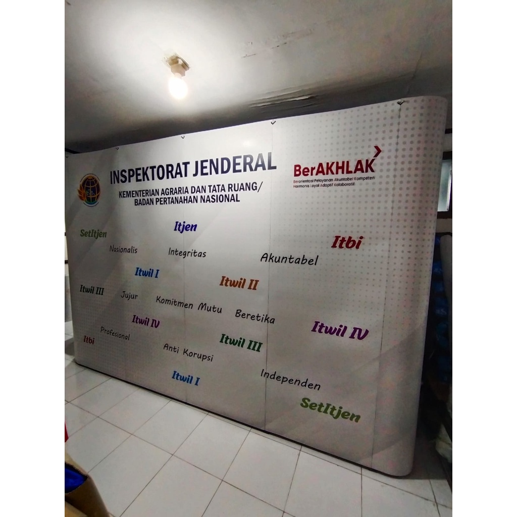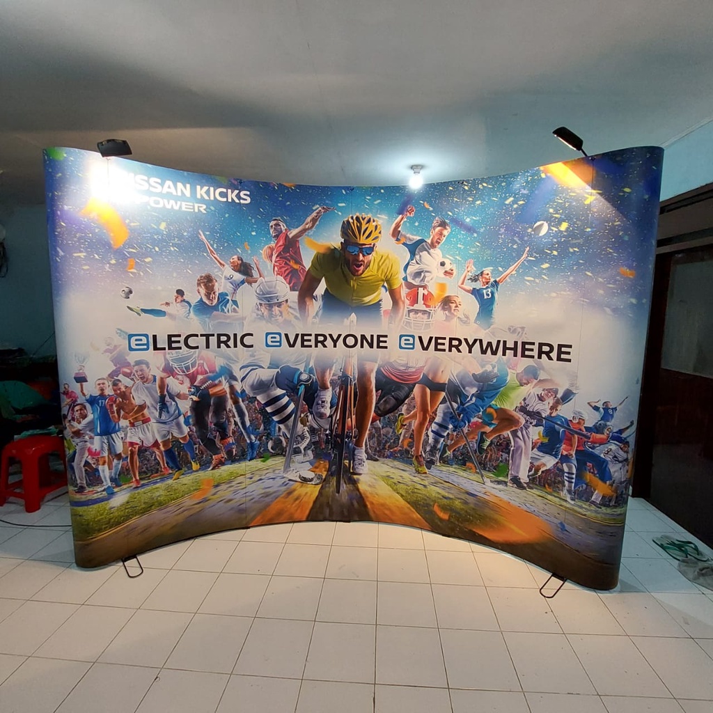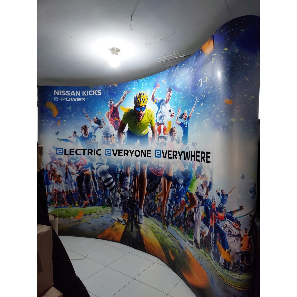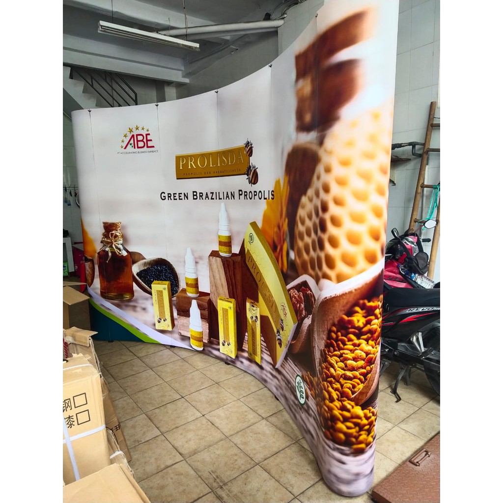 Backwal/ Backwall portable/backdrop portable 3 x 4 Straight/ curve inc printing sdh plus rangka dan plus printing