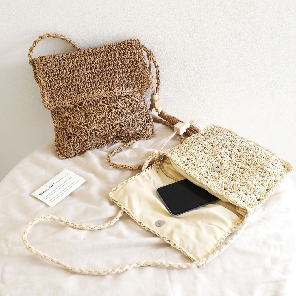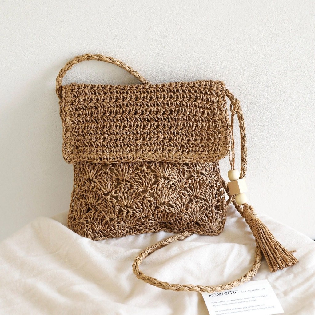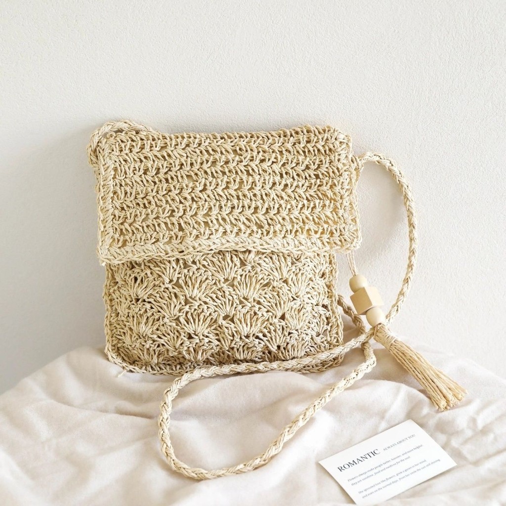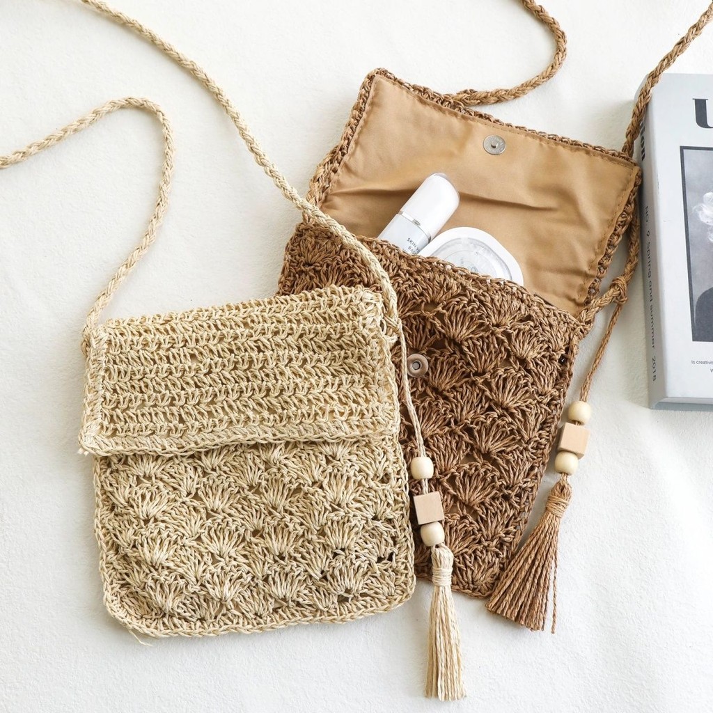 Bagmart Tas Jerami Hutan Tas Bahu Selempang Tas Jerami Bohemian Tas Anyaman Crossbody Sastra Serbaguna