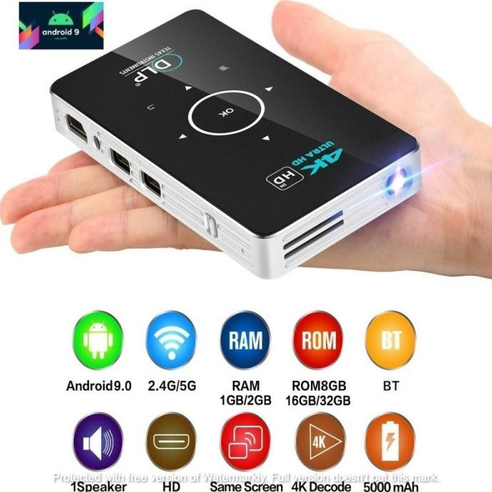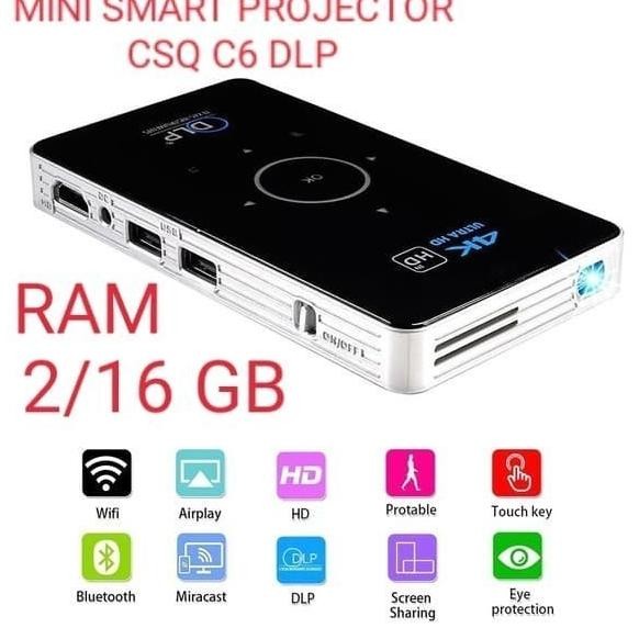 Bagus C6 Dlp Projector / Proyektor Mini Smart Android6 S905X 4Core
