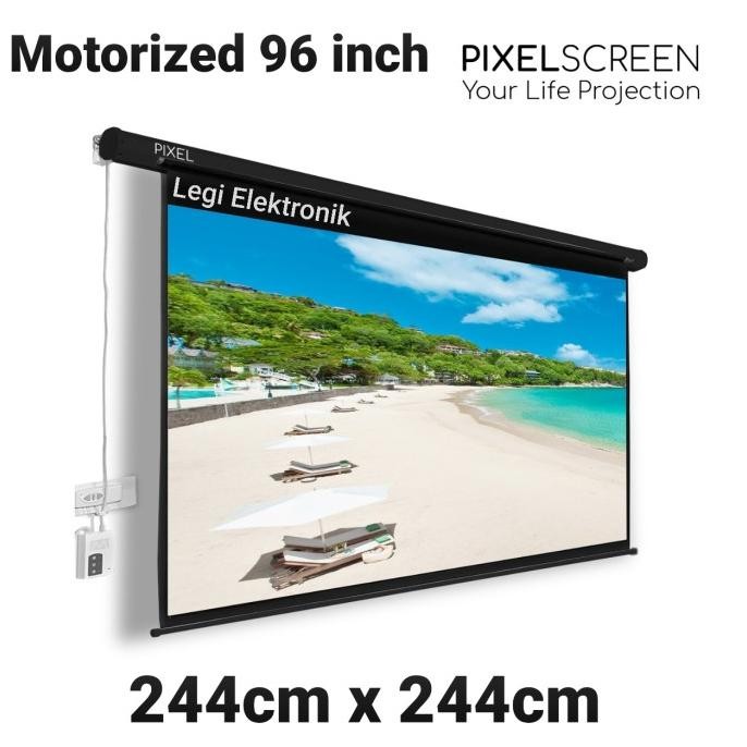 Bagus Screen Projector Pixel Motorized 96" Layar Proyektor Remot Elektrik 96
