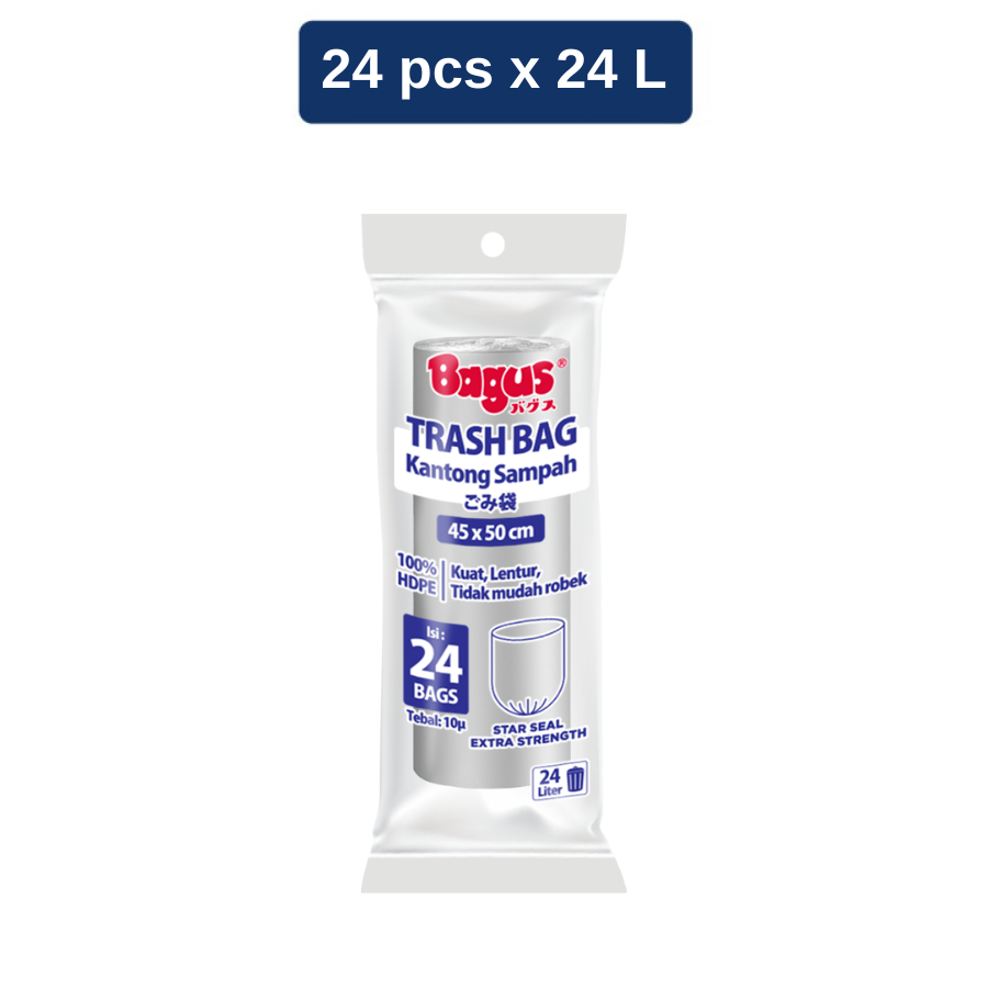 Bagus Trash Bag (Kantong Sampah) Silver Roll - 24L - 10?m - 24 Bags @ 45cm x 50cm