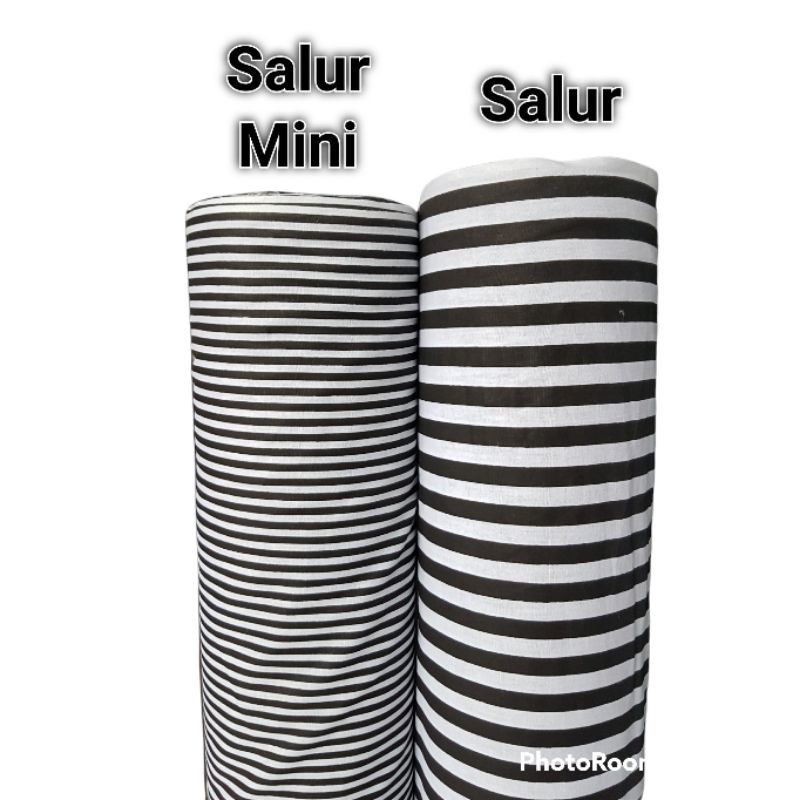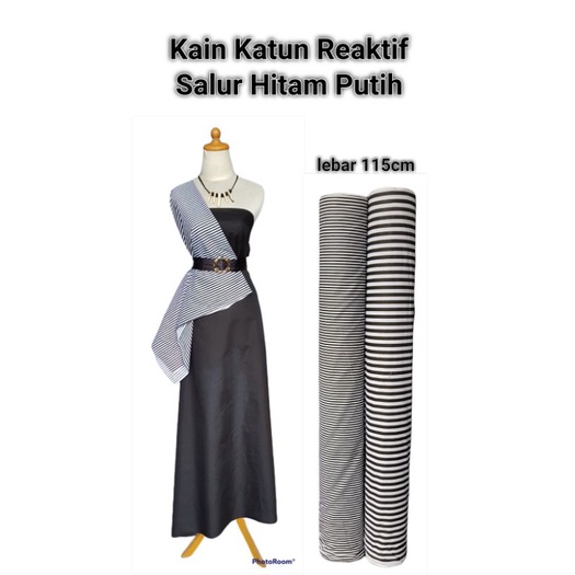 Bahan Kain Katun Reaktif Motif Salur Hitam Putih / cotton reactive strip stripes garis halus lembut murah meteran