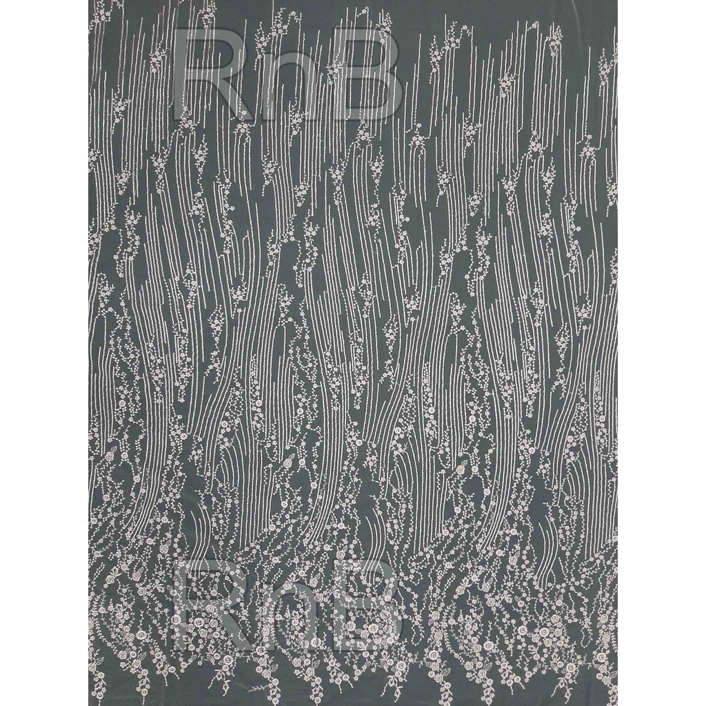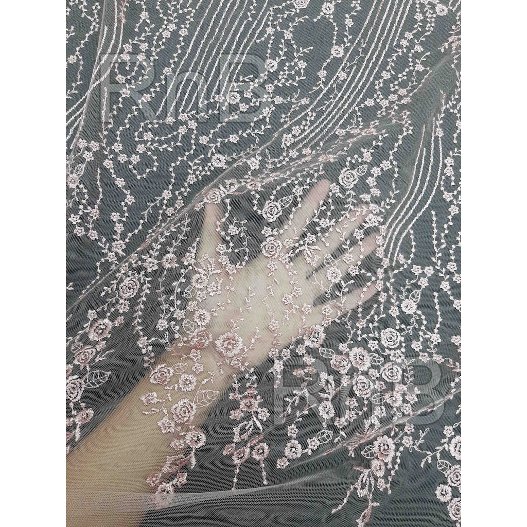 Bahan Kain Tulle / Tille Bordir Motif Bunga Salur