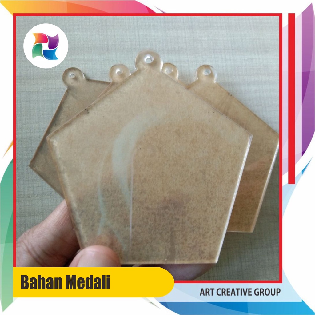 Bahan Medali Akrilik Bening bentuk Bunga, Segi lima Cembung, Segilima Lurus, Bulat UKURAN 6,5X6,5 CM