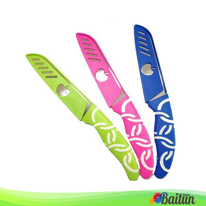 Baitun Pisau Buah Kecil Motif Apel / Peso Alat Dapur Mini / Piso Pemotong Sayur + Sarung Penutupnya / Peralatan Meja Makan