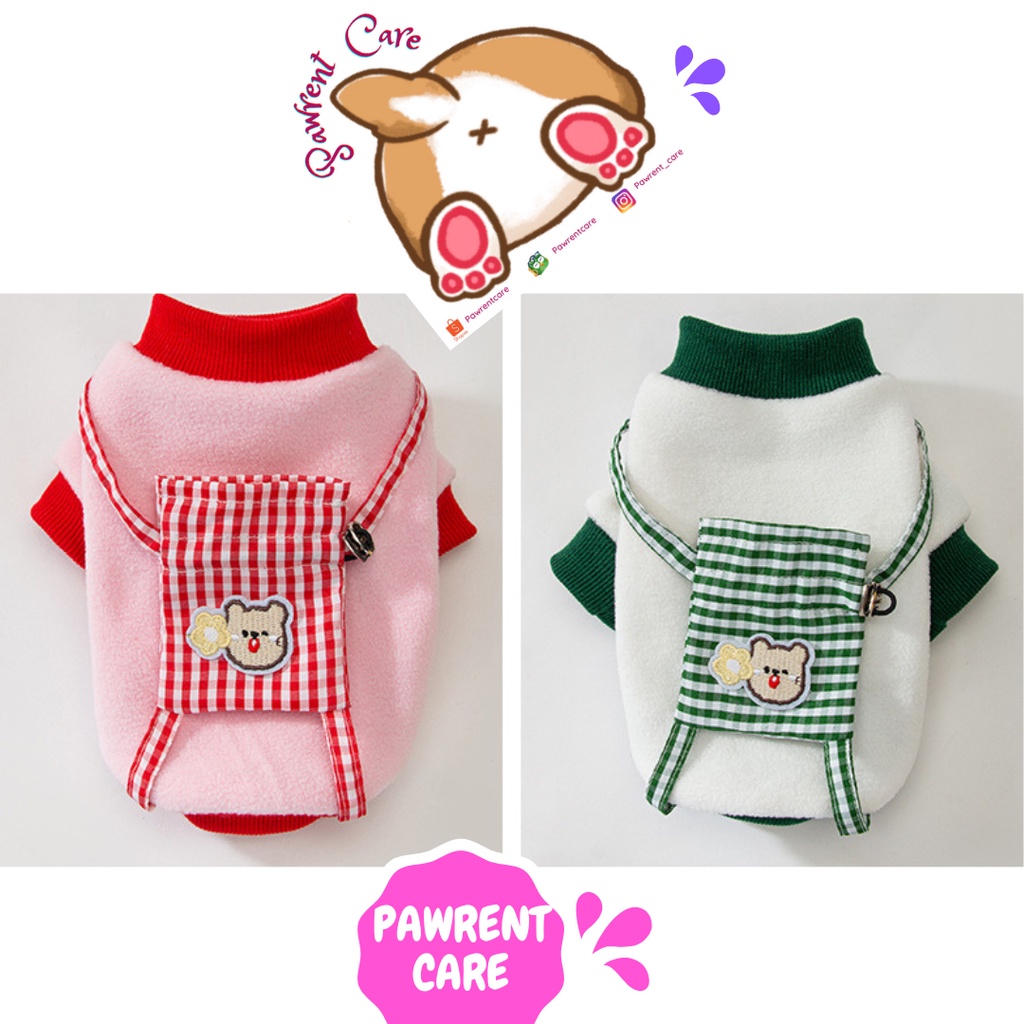 Baju Anjing/Dog Clothes/Pet Clothes/Baju Kucing/Cat Clothes/Kostum Anjing lucu/Pakaian Hewan/Bear Backpack sweater RED PINK