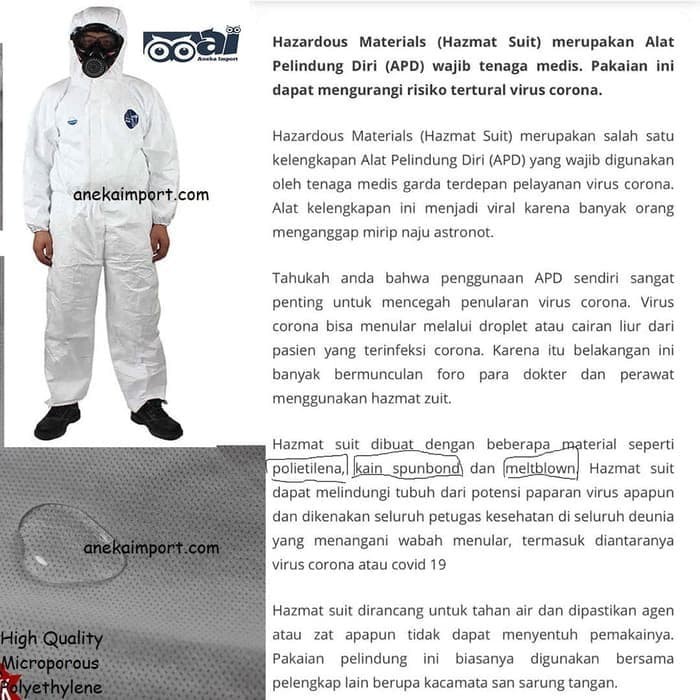 Baju Apd Hazmat Standar WHO- APD Alat Pelindung Diri- Baju Apd Hazmat