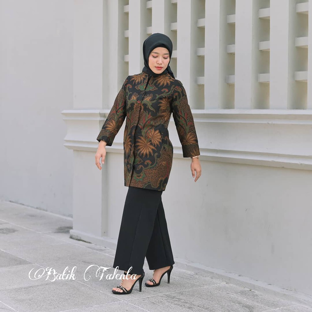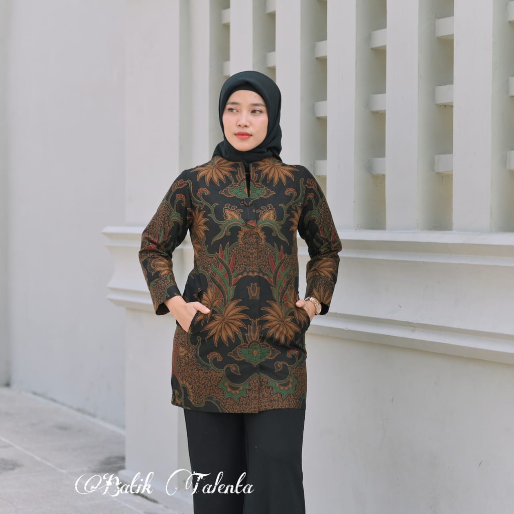 Baju Batik Atasan Wanita - Blouse Batik - Blus Batik Kerja - Baju Batik atasan - Premiun ABU