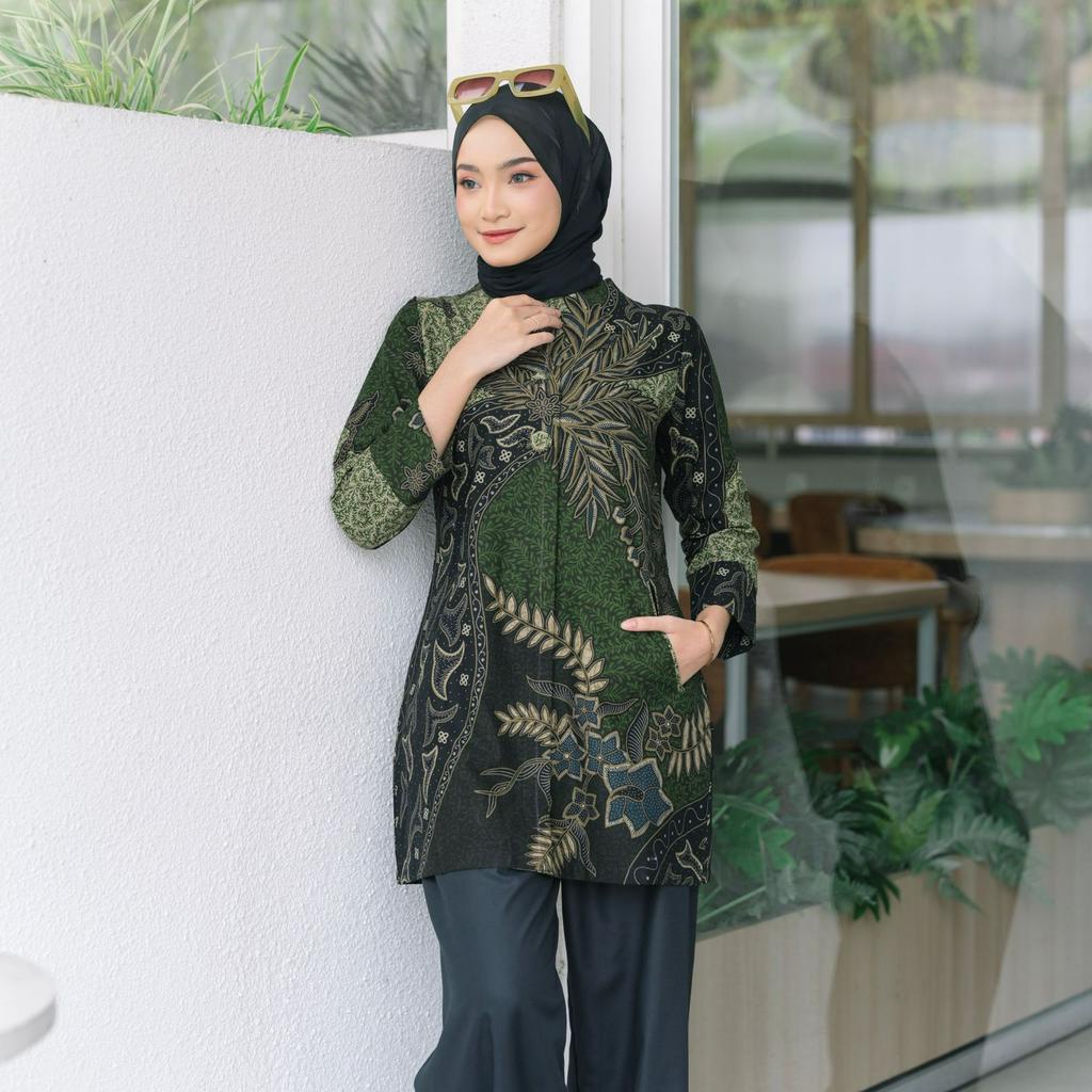 Baju Batik Atasan Wanita - Blouse Batik - Blus Batik Kerja - Baju Batik atasan - Premiun red