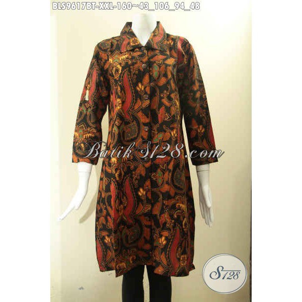 Baju Batik Wanita Big Size XXL Lengan 7/8 Model Krah Pakai Kancing Depan Buat Kondangan BLS 9617 BT
