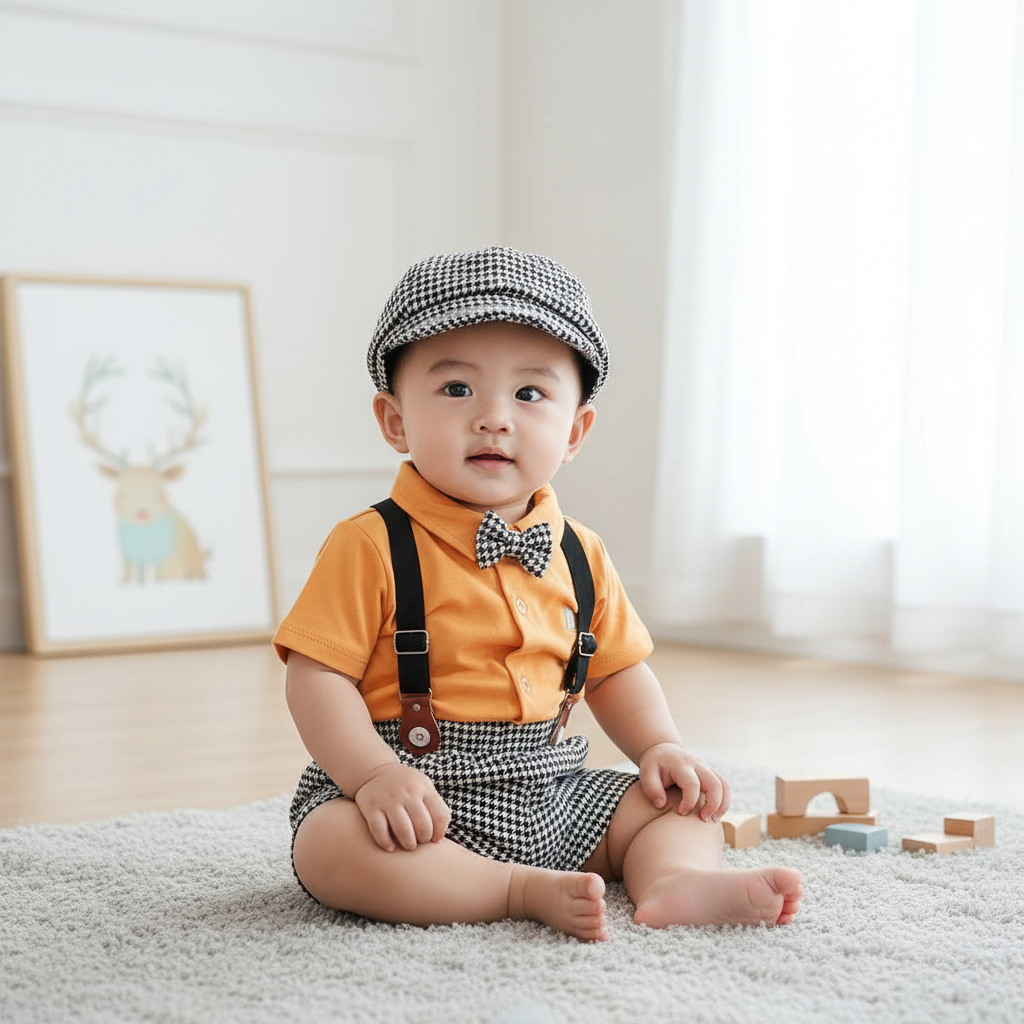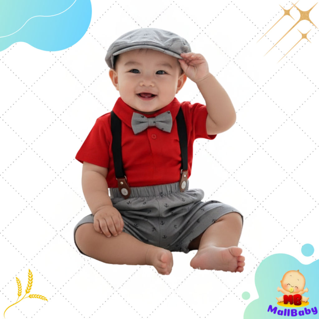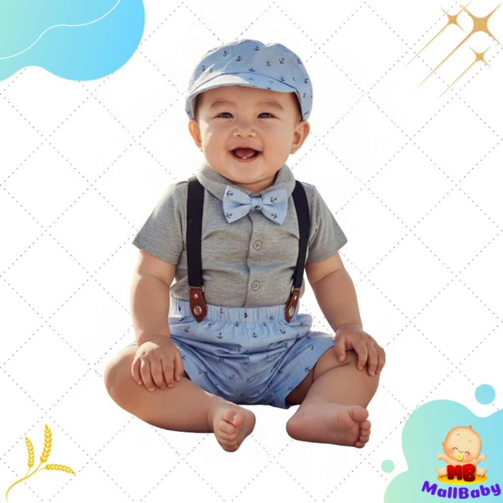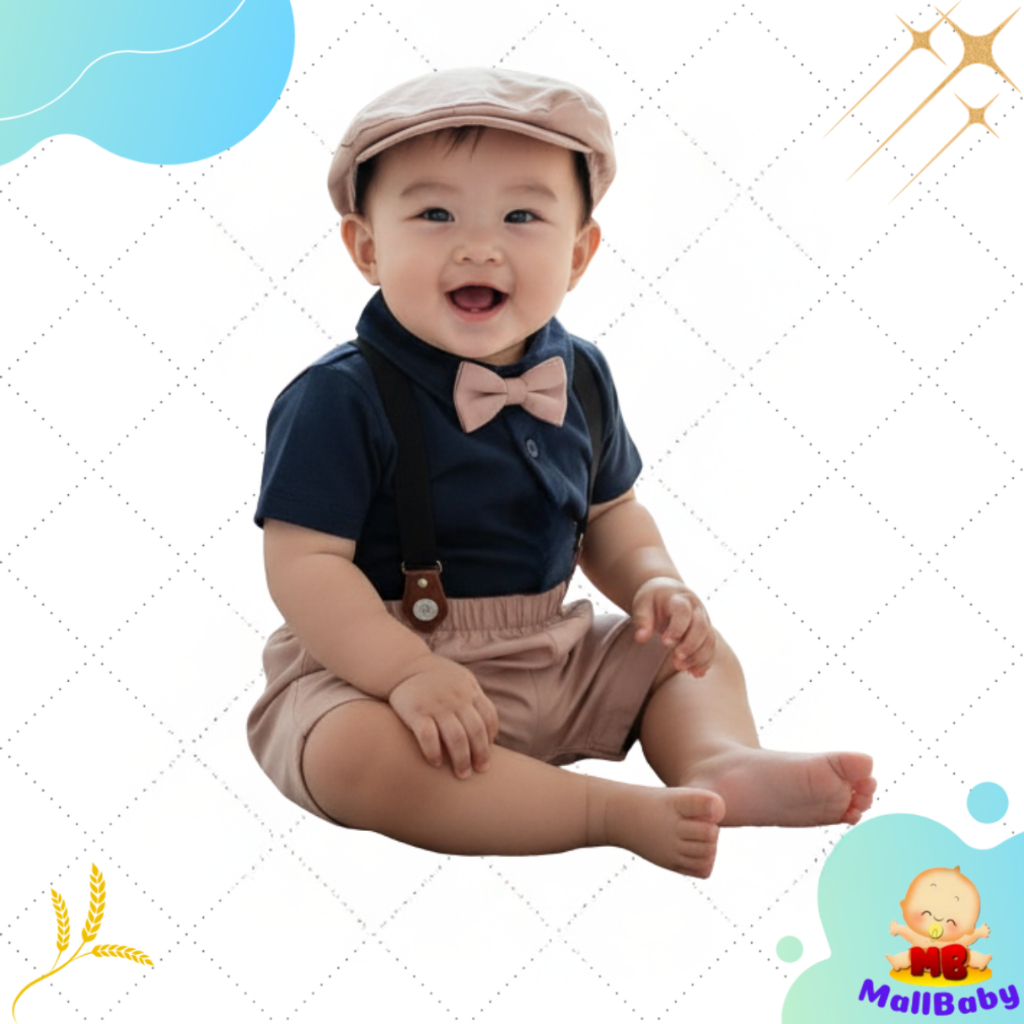 Baju Bayi Laki Laki 3 5 6 9 12 Bulan Setelan Jumper Pesta Dasi Topi Kondangan Bepergian Bayi Nathan