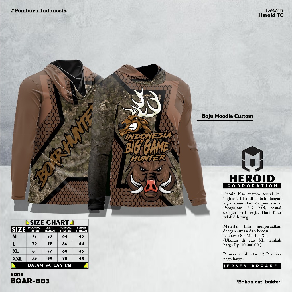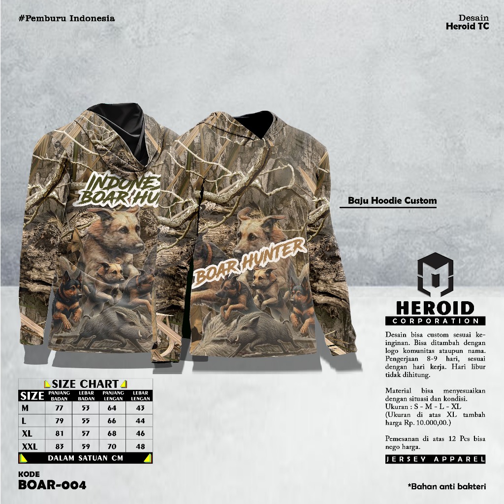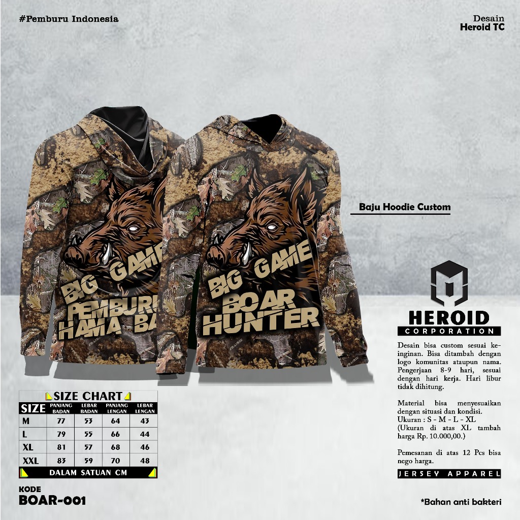 Baju Kamuflase Hunting dan Kaos Berburu Lengan Panjang Camo untuk Pria Motif Boar Hunter Indonesia
