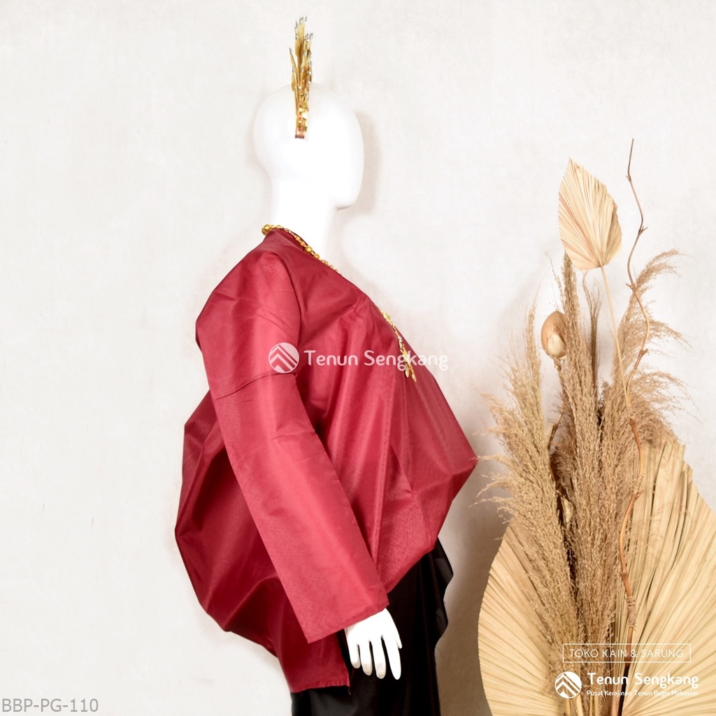 Baju Bodo Adat Bugis Makassar Dewasa Polos Original Tokko Asli Lengan Panjang Marun - Tenun Sengkang BBP-PG-110 (Harga per Pcs)