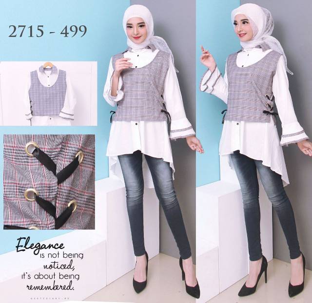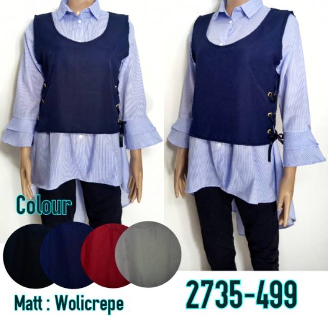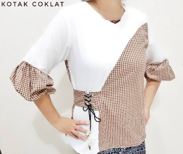 Baju Cewe Wanita Fashion Modis Murah Kekinian Modern Blus Kantor Kerja Atasan Kotak Salur Polos