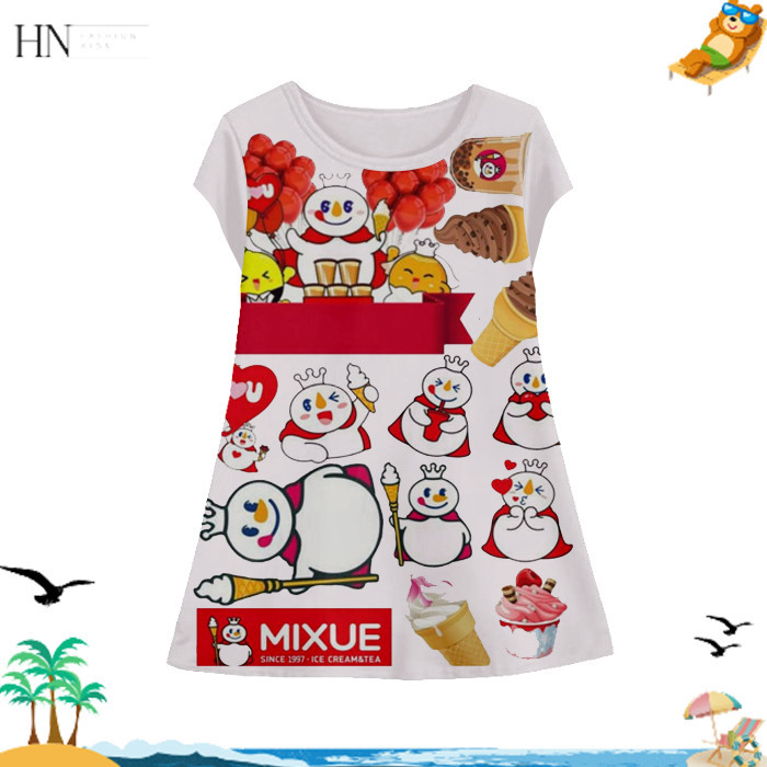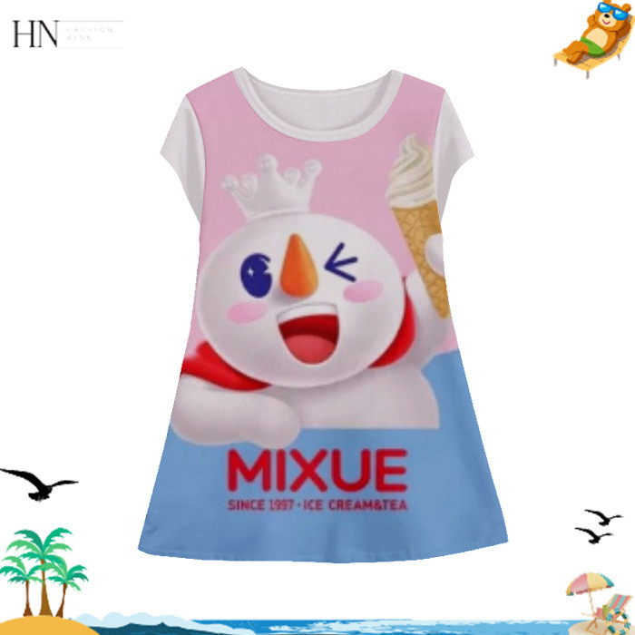 Baju Dress Mixue Lucu Untuk Perempuan Tunik Printing Anak Wanita Model Mixue Usia 1-12 Tahun - HNFashion