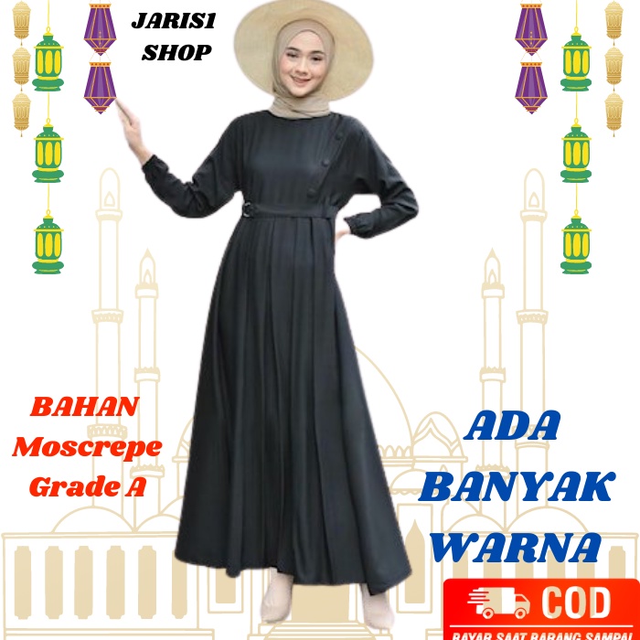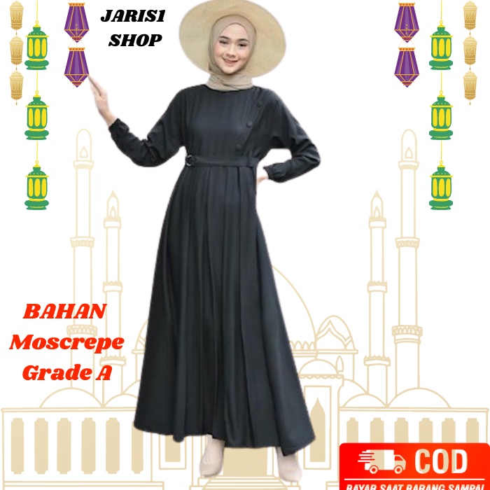 Baju Gamis Ibu Ibu Terbaru Pengajian Dress Simple Elegan Lebaran Kondangan Modern Muslim Muslimah Syari Polos Premium Moscrepe Hitam Adem Orang Tua Kekinian