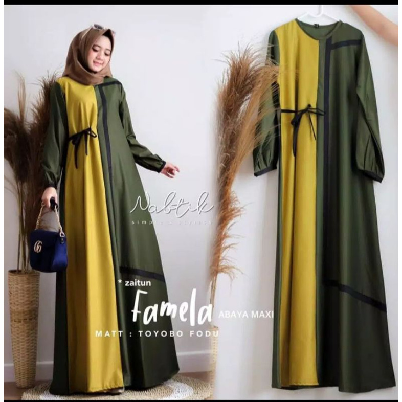 Baju Gamis Wanita Gamis Sleting Busui Gamis Kombinasi Warna Gamis Famela.