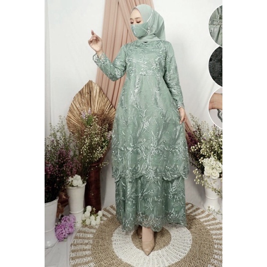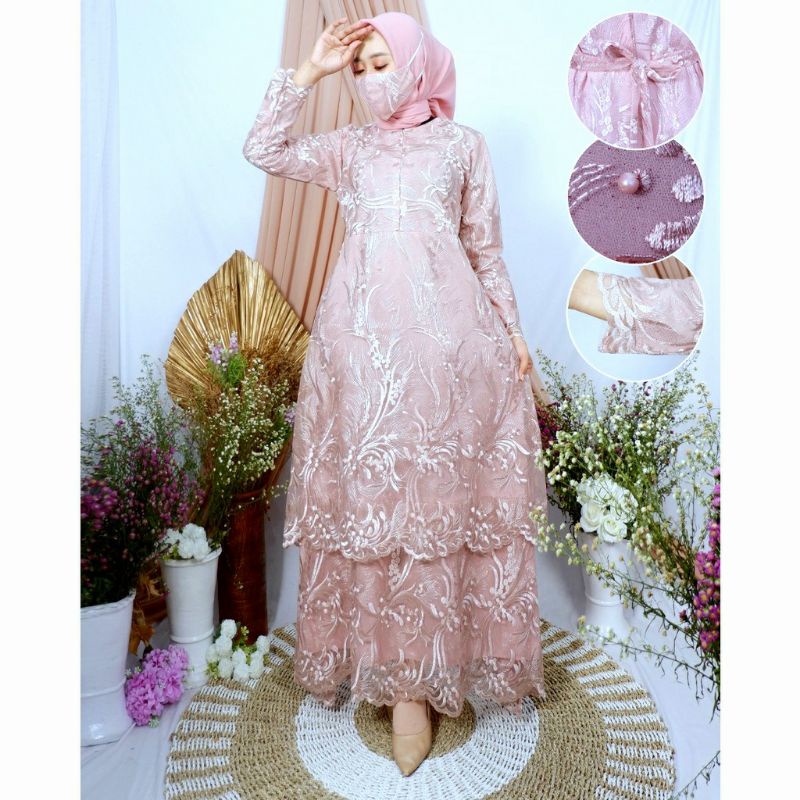 Baju Gamis brukat kondangan dress brukat terbaru tile tingkat melayu gamis kondangan
