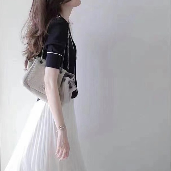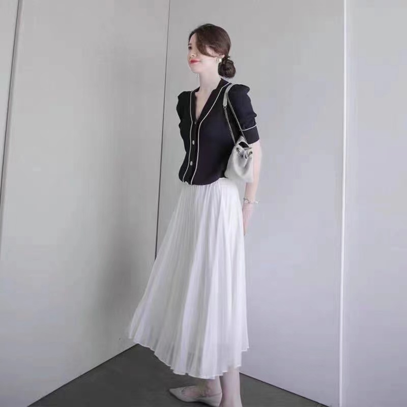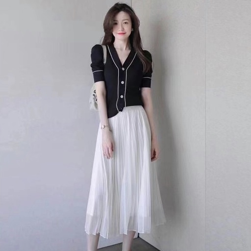 FANMU One Set Dress Baju Hitam + Rok Putih / Baru Setelan