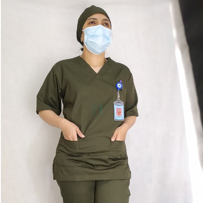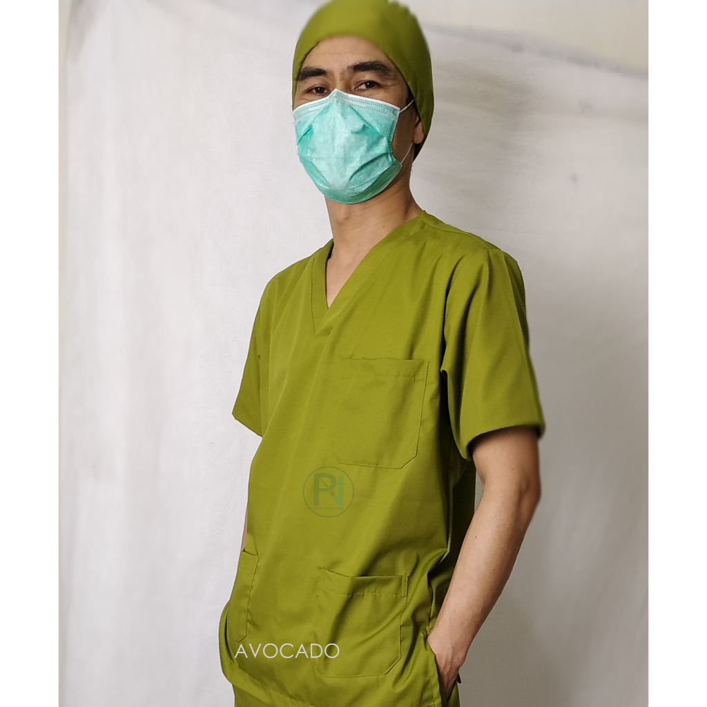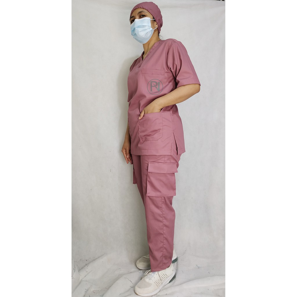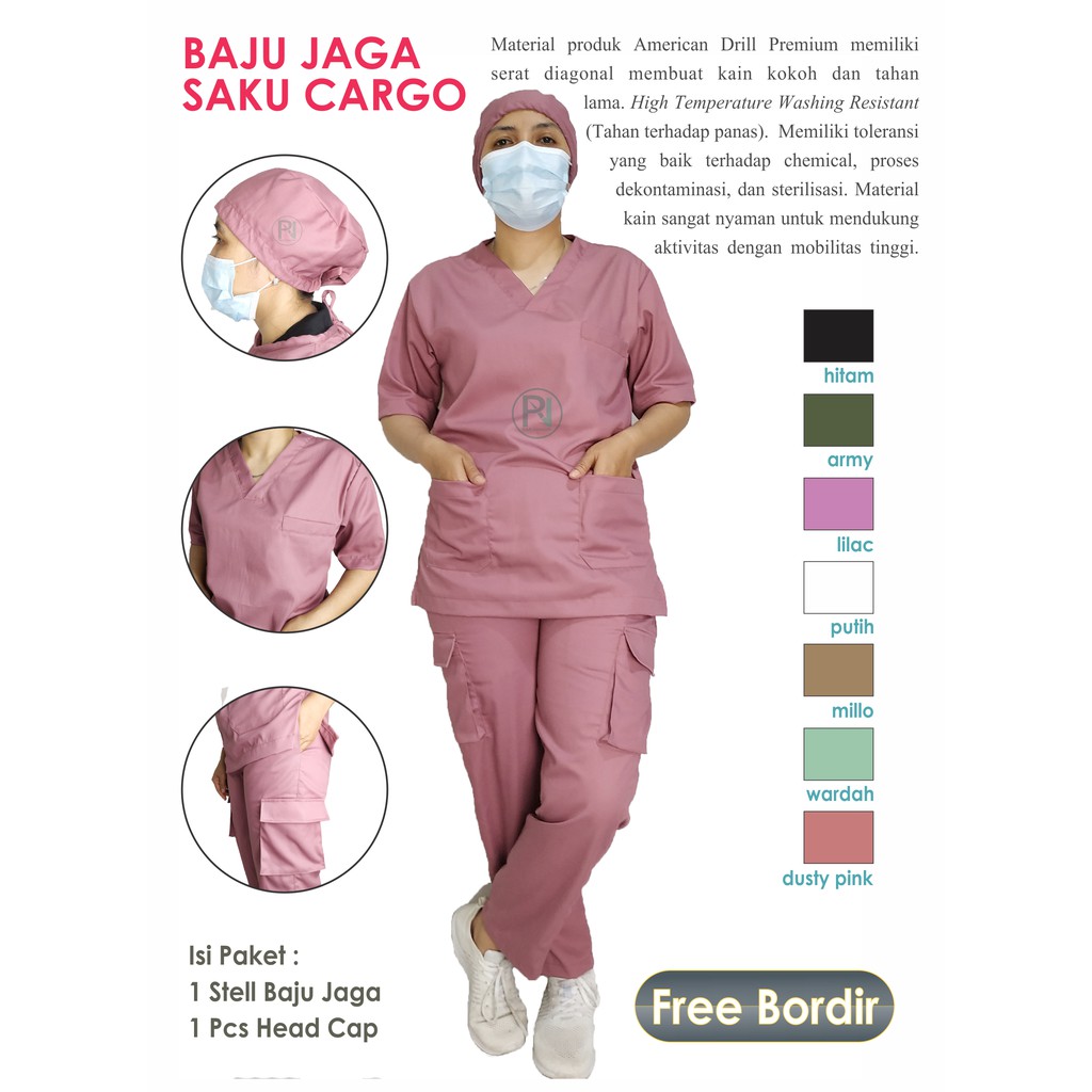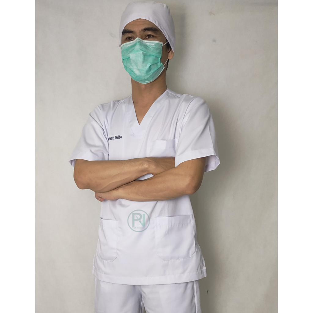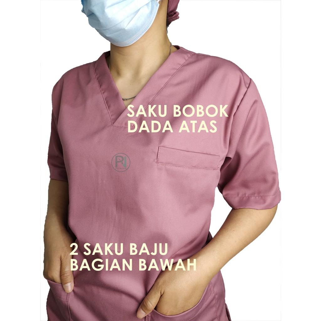 Baju Jaga Saku Cargo FREE BORDIR/Tangan Pendek/Baju Tindakan/Baju OK/Scrub Suit