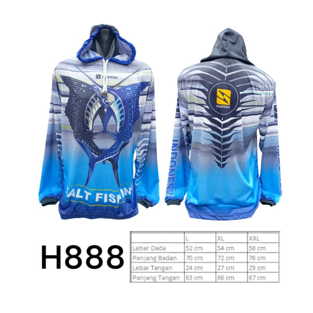 Baju Jersey mancing dewasa pakai topi kupluk Kaos Jersey mancing lengan panjang motif frinting