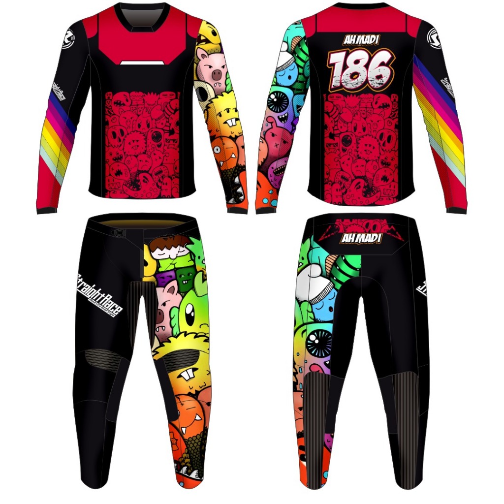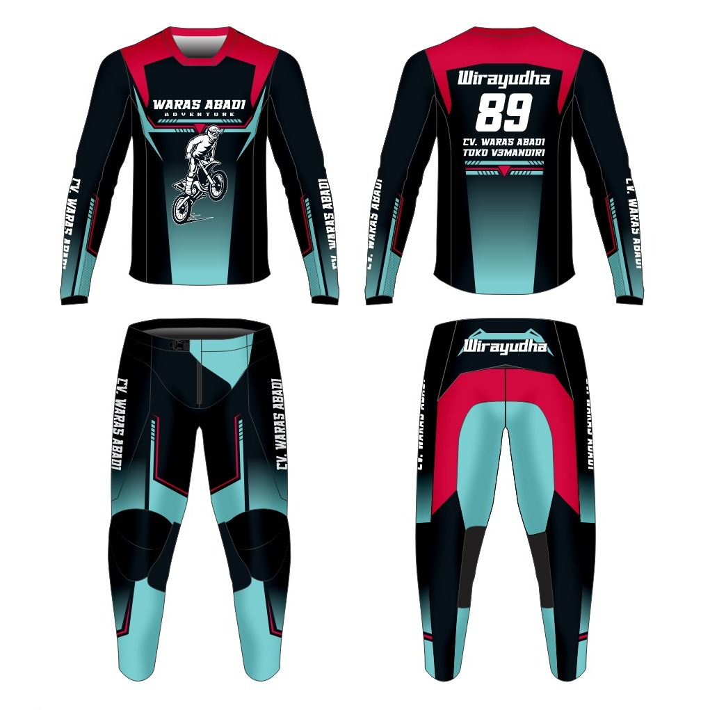 Baju Jersey set Balap Trail Motocross Adventure Trabas Racing Custom Design (Bahan Strech)