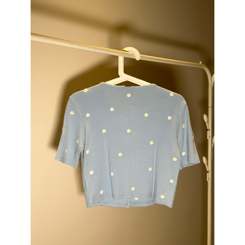 Baju Kancing Biru-Bunga
