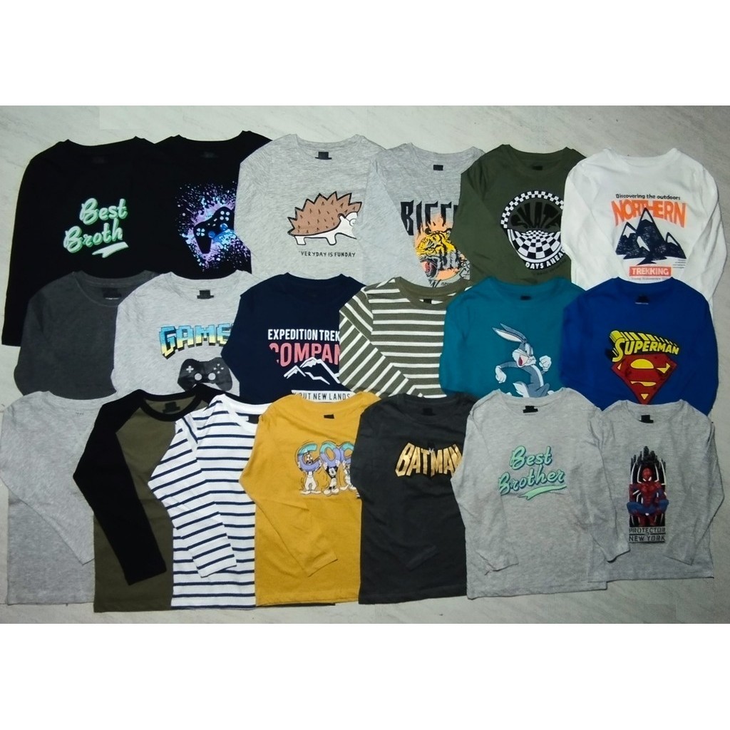 Baju Kaos Anak Laki Perempuan Lengan Panjang Hm 2- 10 Tahun