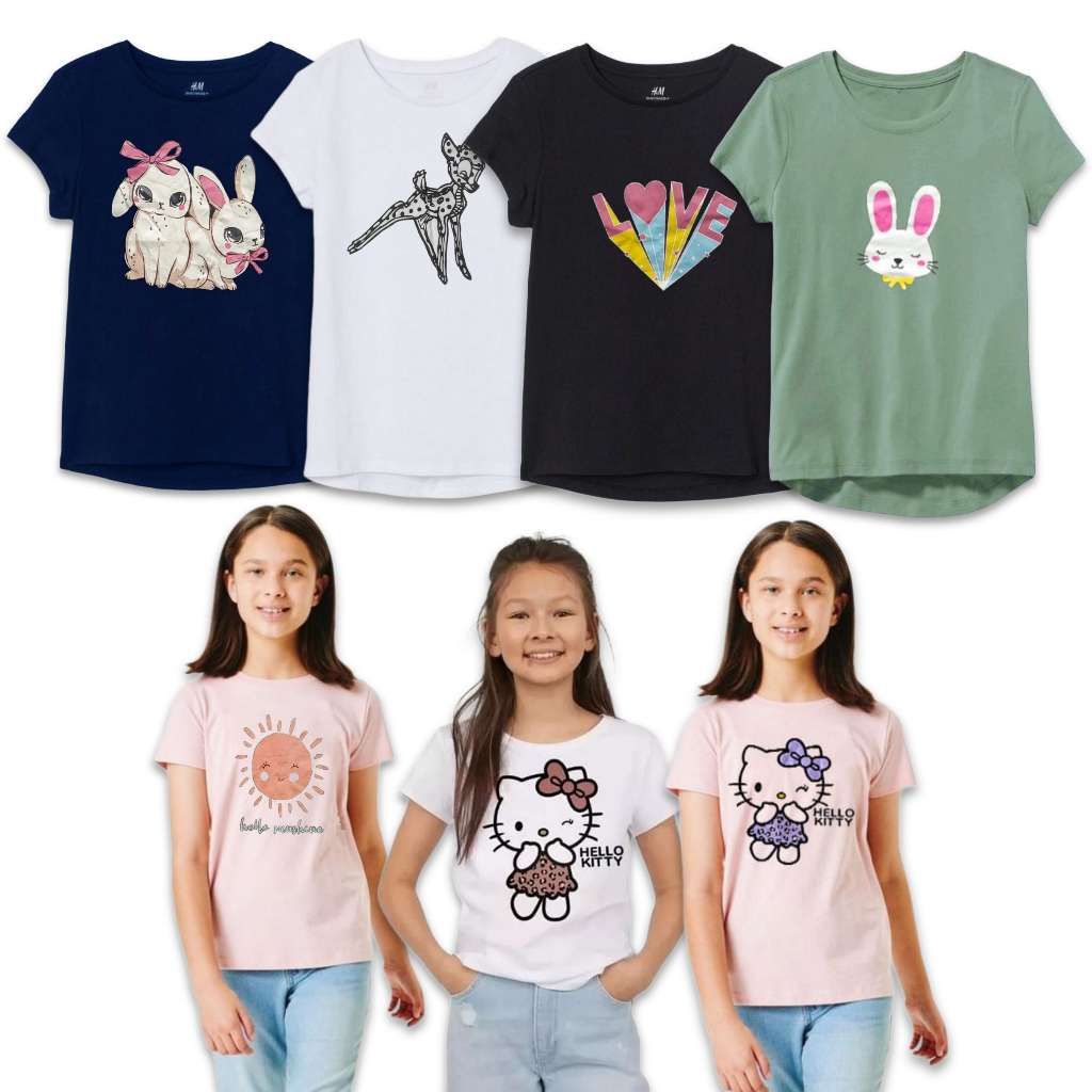 Baju Kaos Anak Perempuan Lengan Pendek Hm 8-14 Tahun