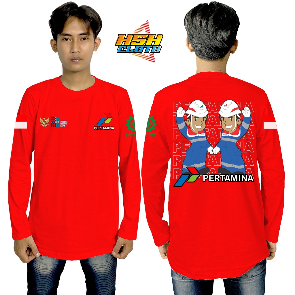 Baju Kaos Distro Lengan Panjang Pertamina BUMN Maskot Perusahaan Perusahaan Bisa Custom - HSHCloth