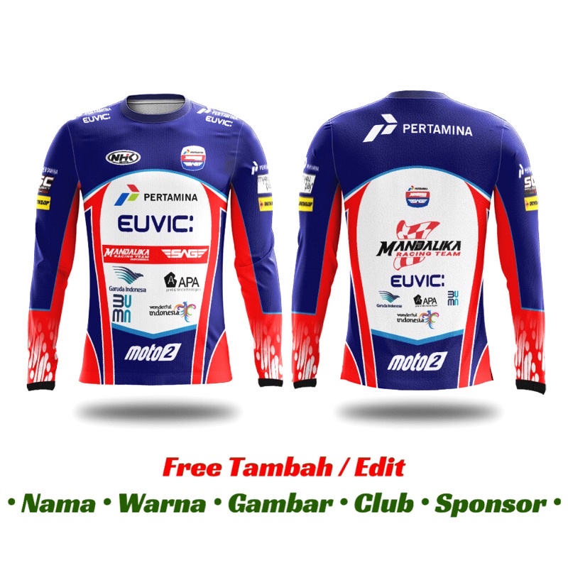 Baju Kaos Jersey MOTOGP Custom Full Printing | Free Nama Sponsor Logo | PERTMINA | MOTO2 MANDALIKA