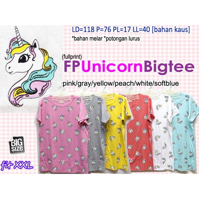 Baju Kaos Lucu Wanita FP Unicorn Bigtee XXL BIG JUMBO SIZE BESAR CUTE IMUT