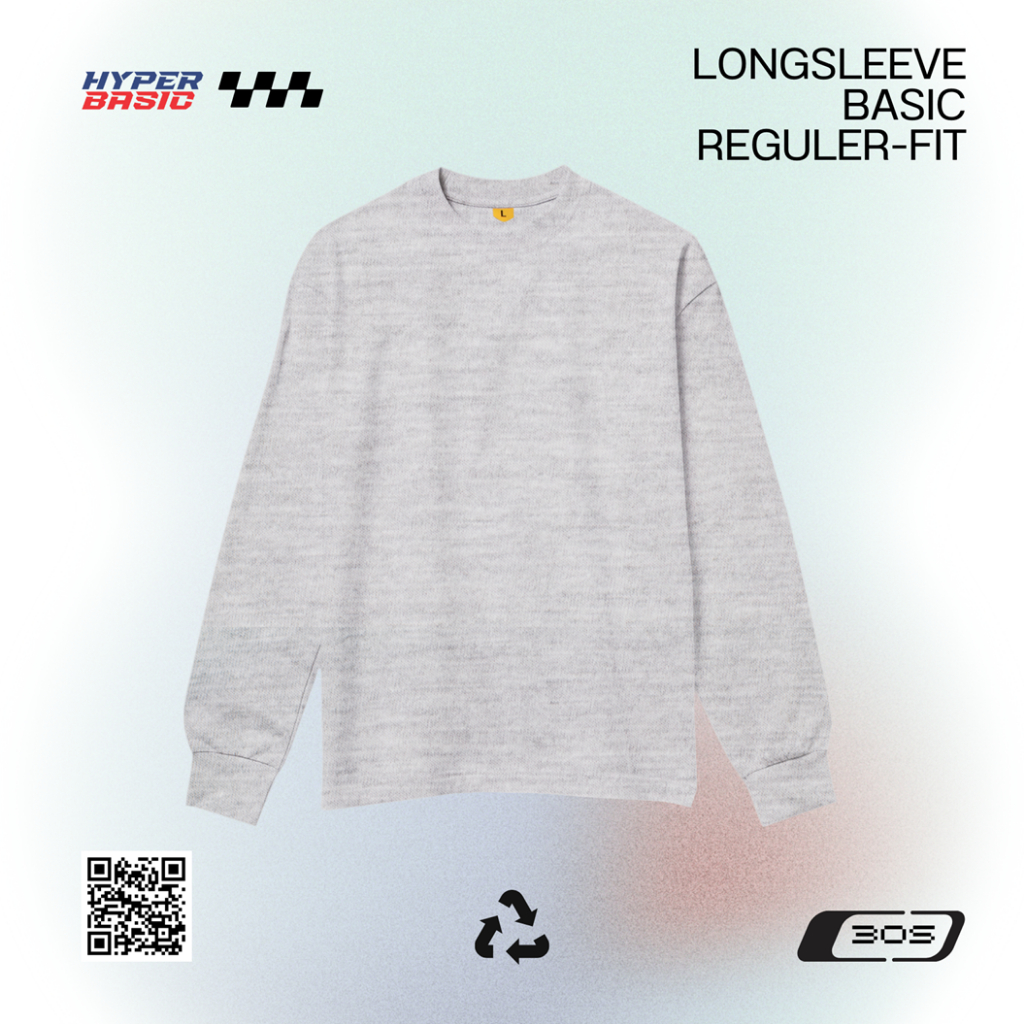 𝐇𝐲𝐩𝐞𝐫𝐛𝐚𝐬𝐢𝐜 Baju Kaos Polos Lengan Panjang Pria Warna Abu Grey Misty Twotone 30s Ukuran S-XL