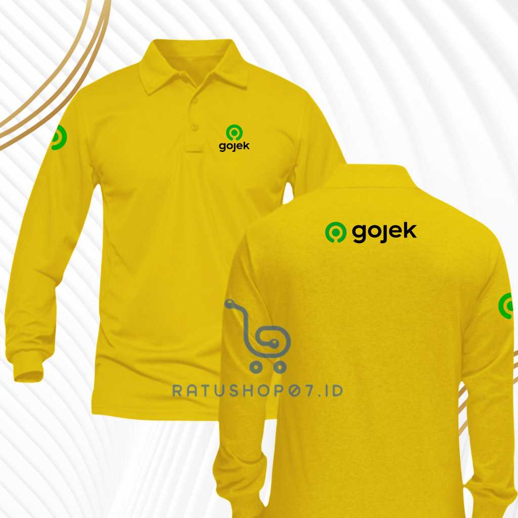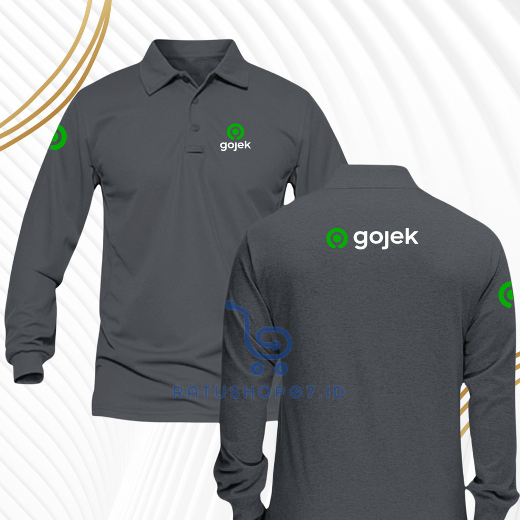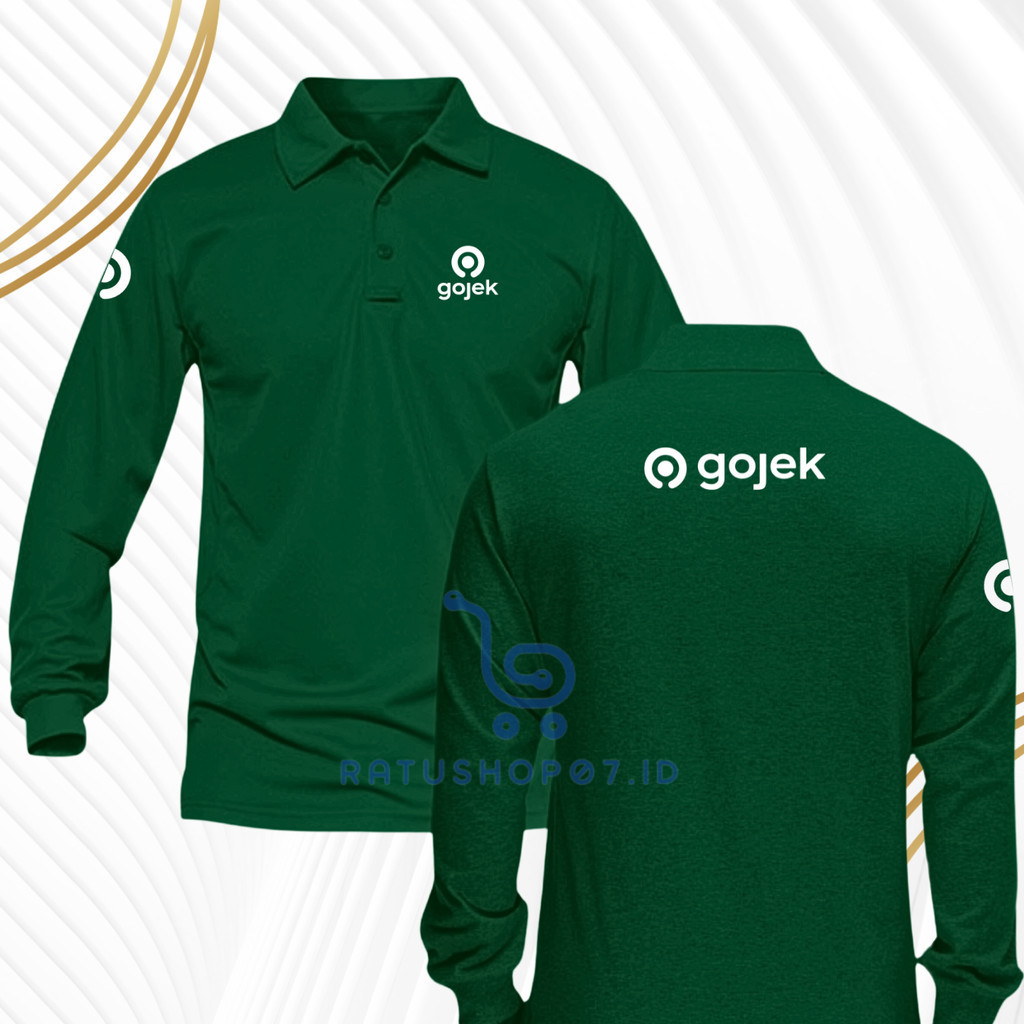 Baju Kaos Poloshirt Lengan Panjang Pria dan Wanita Logo Tukang Gojek Seragam Kerja Driver Ojek Online Terbaru Custome Sablon Dtf Dewasa