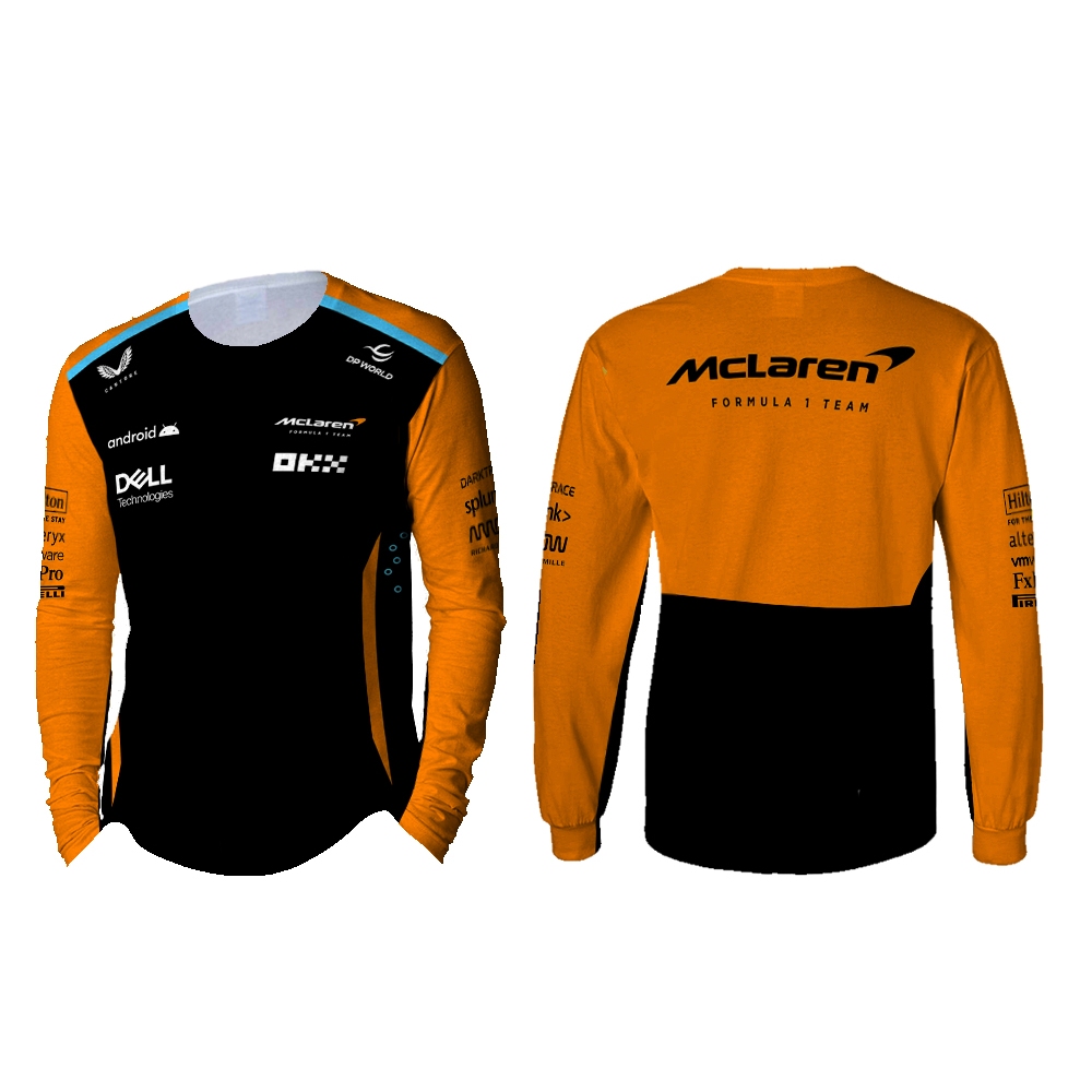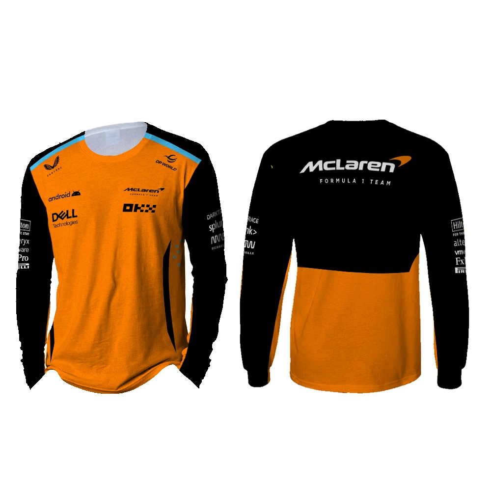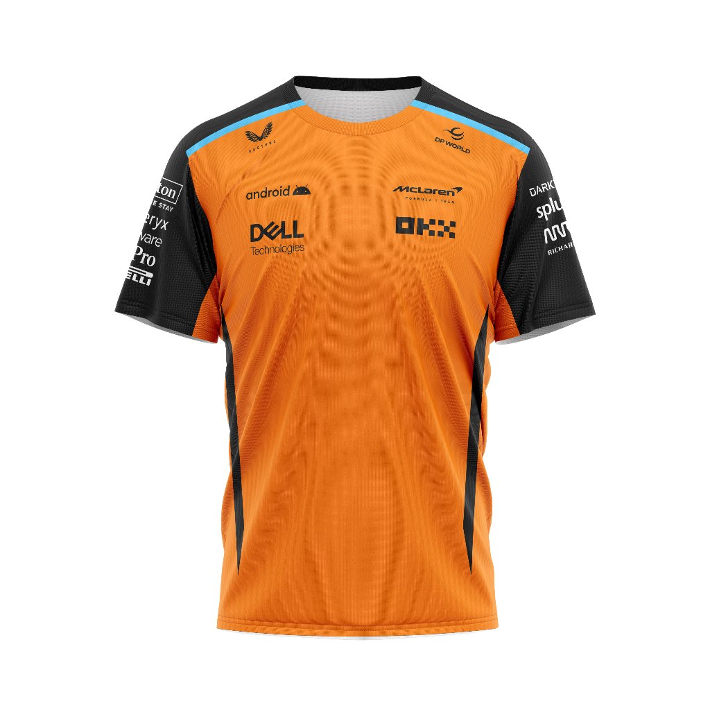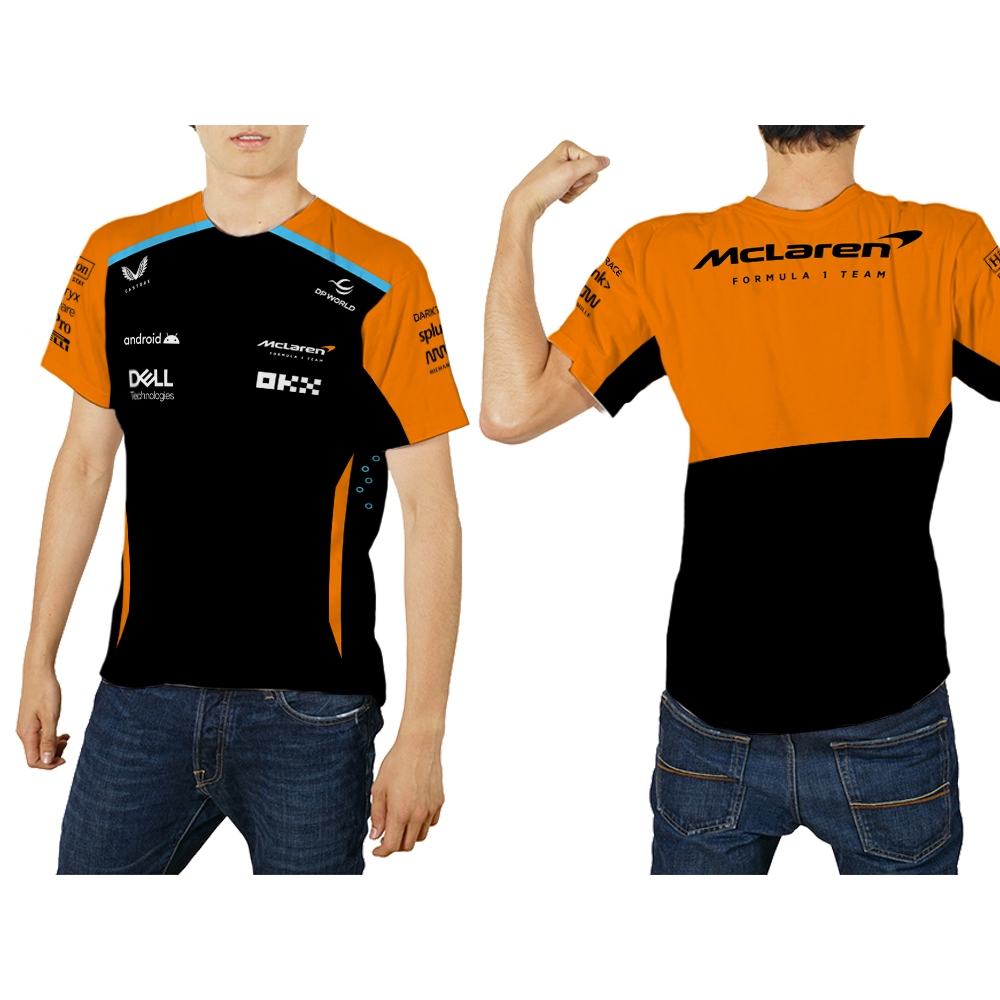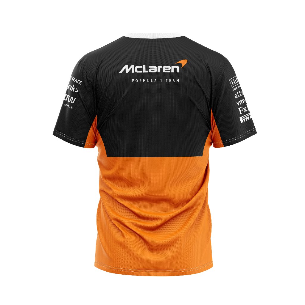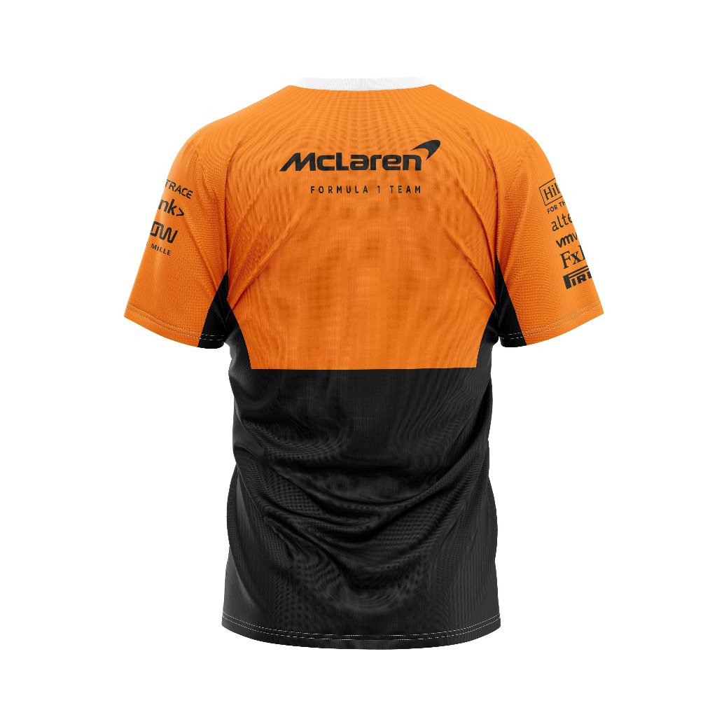 Baju Kaos Tshirt Pria Jersey Balap F1 2024 Mclaren Hitam & Orange Ver Full Print Custom