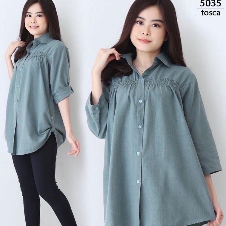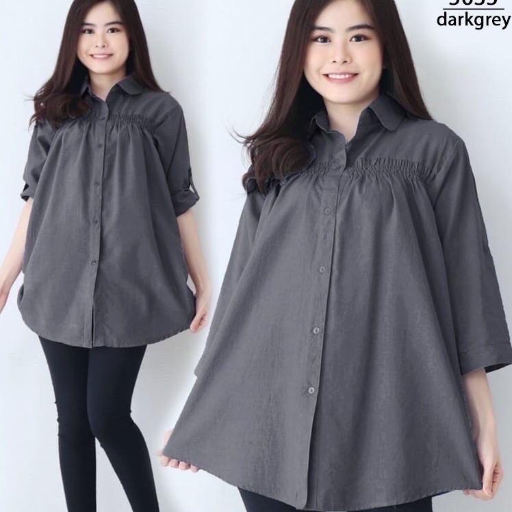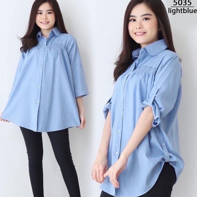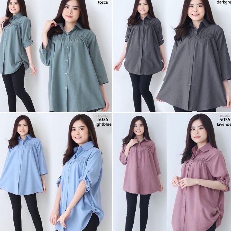 Baju Kemeja Big Size Jumbo 5035 wanita besar kerja kantor hamil menyusui Kerja Kantor XL XXL XXXL A4