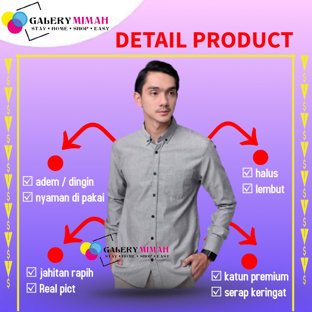 Baju Kemeja Pria Polos Lengan Panjang Kameja Alisan Baju Kerja Kantor Pria Atasan Hem Cowok Kasual Katun Premium Warna Hitam Putih Hijau Tosca Pink Hijau Biru Muda Hijau Army Biru BCA Abu Tua Abu Muda Navy Maroon Merah Cabe Cream