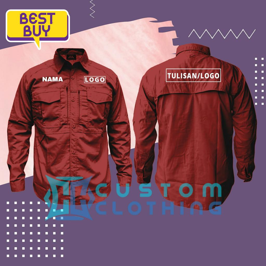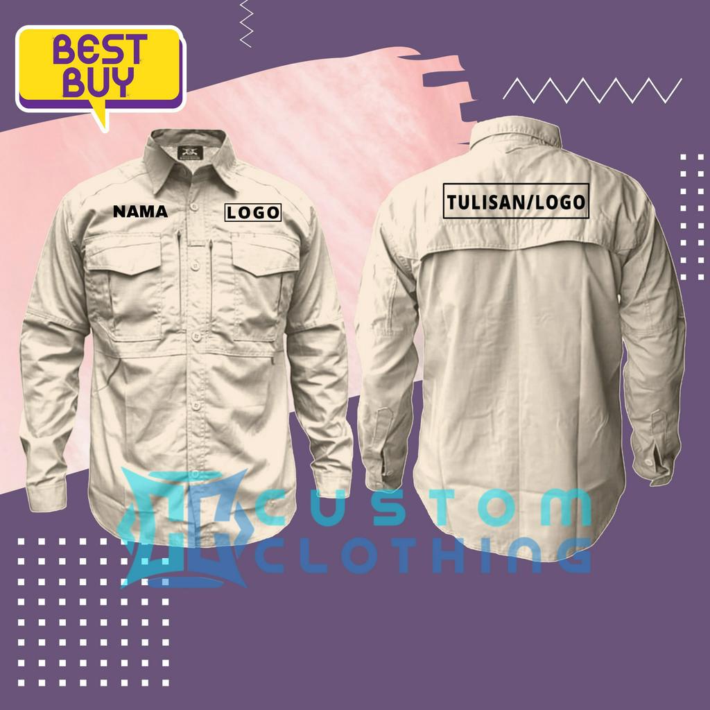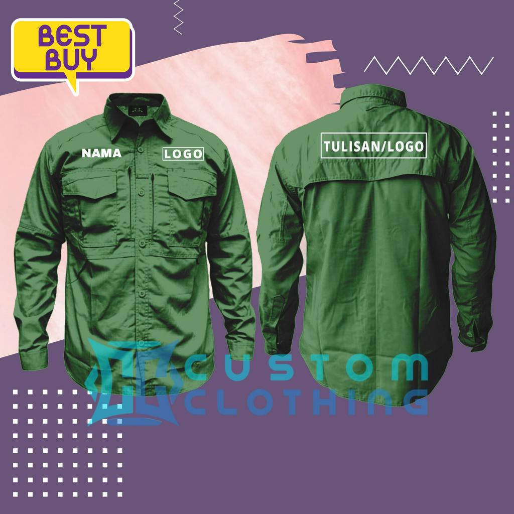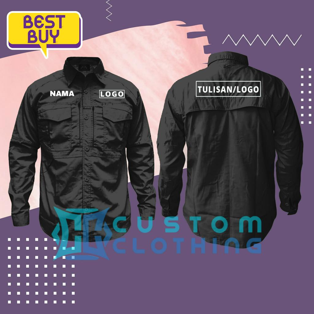 Baju Kemeja Tactical Kerja Lapangan Outdoor Bordir Nama Logo Tulisan