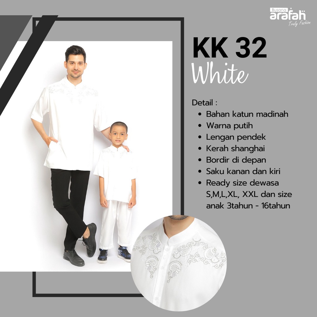 Baju Koko Couple Ayah dan Anak Katun KK 32 White & Brown ORIGINAL by.Busana Arafah