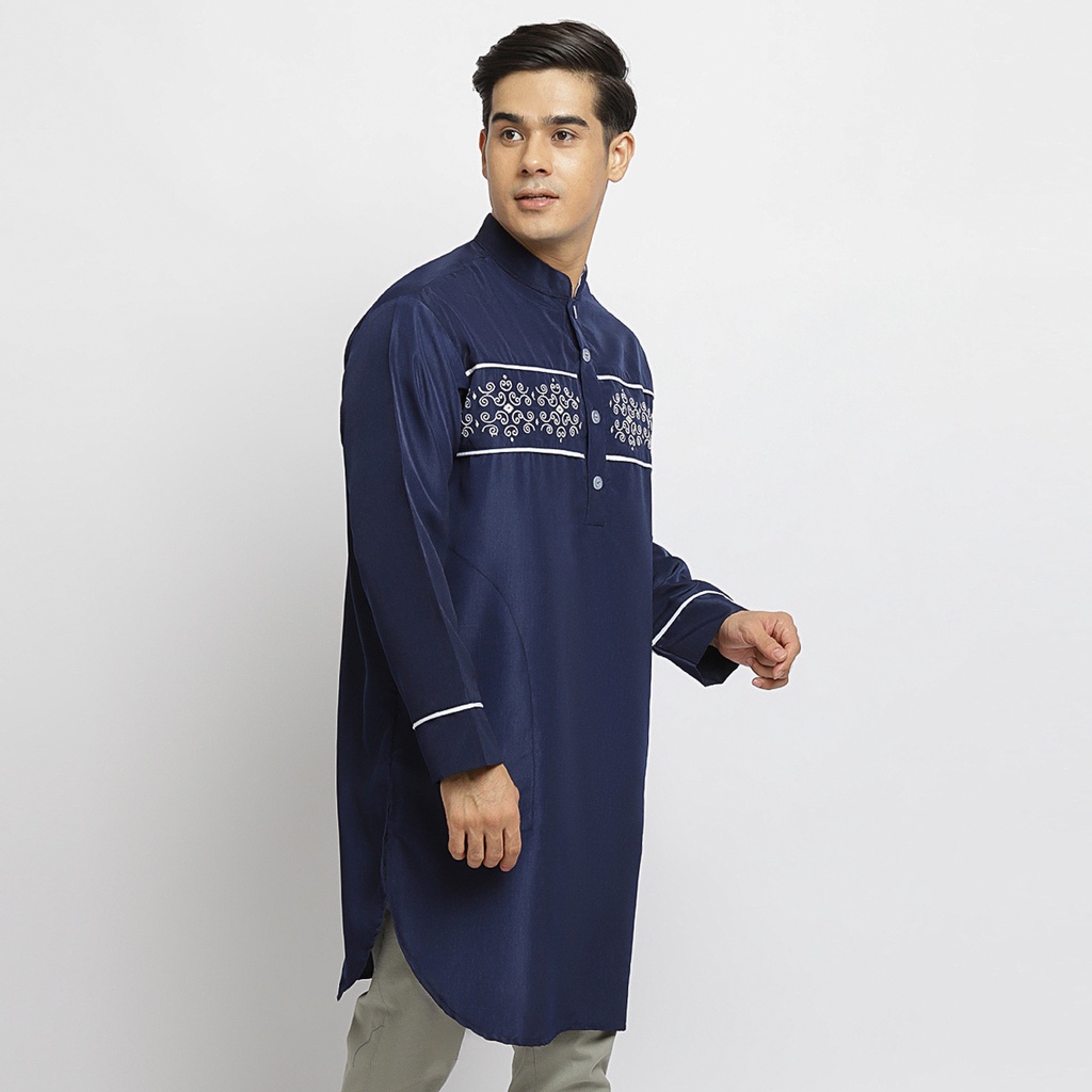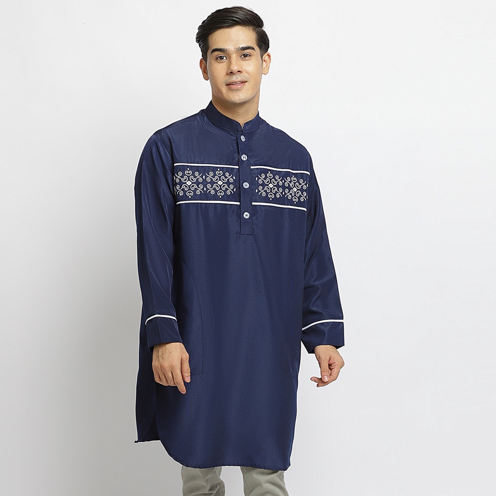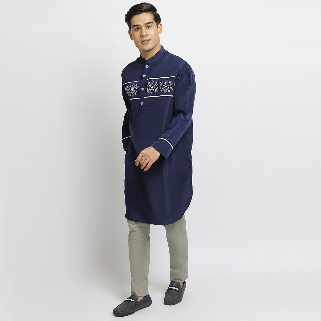Baju Koko Kurta Pakistan Bahan Licin Lengan Panjang PK Maher Navy By Busana Arafah