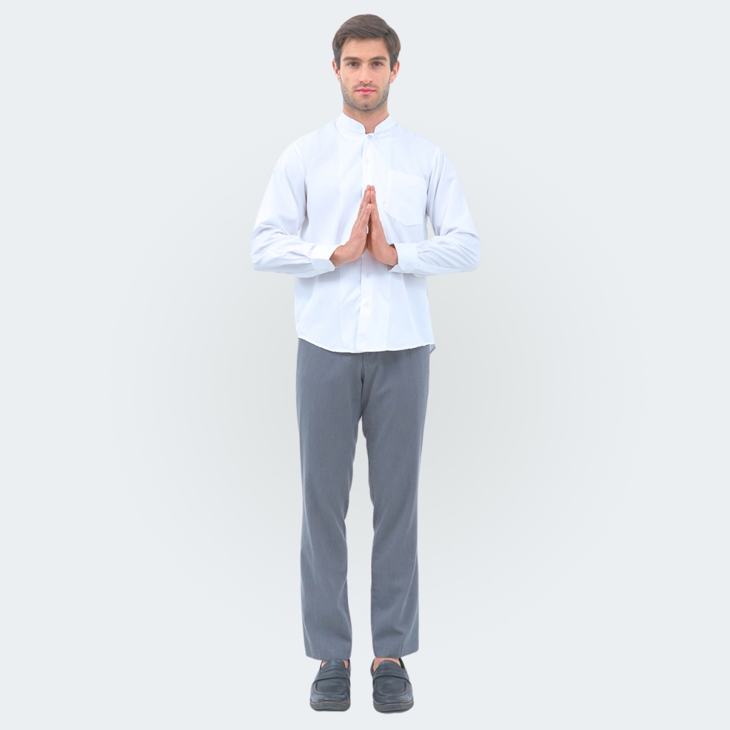 Odza Baju Koko Regular Fit Lengan Panjang Pria Muslim Dewasa Jumbo Putih Adian
