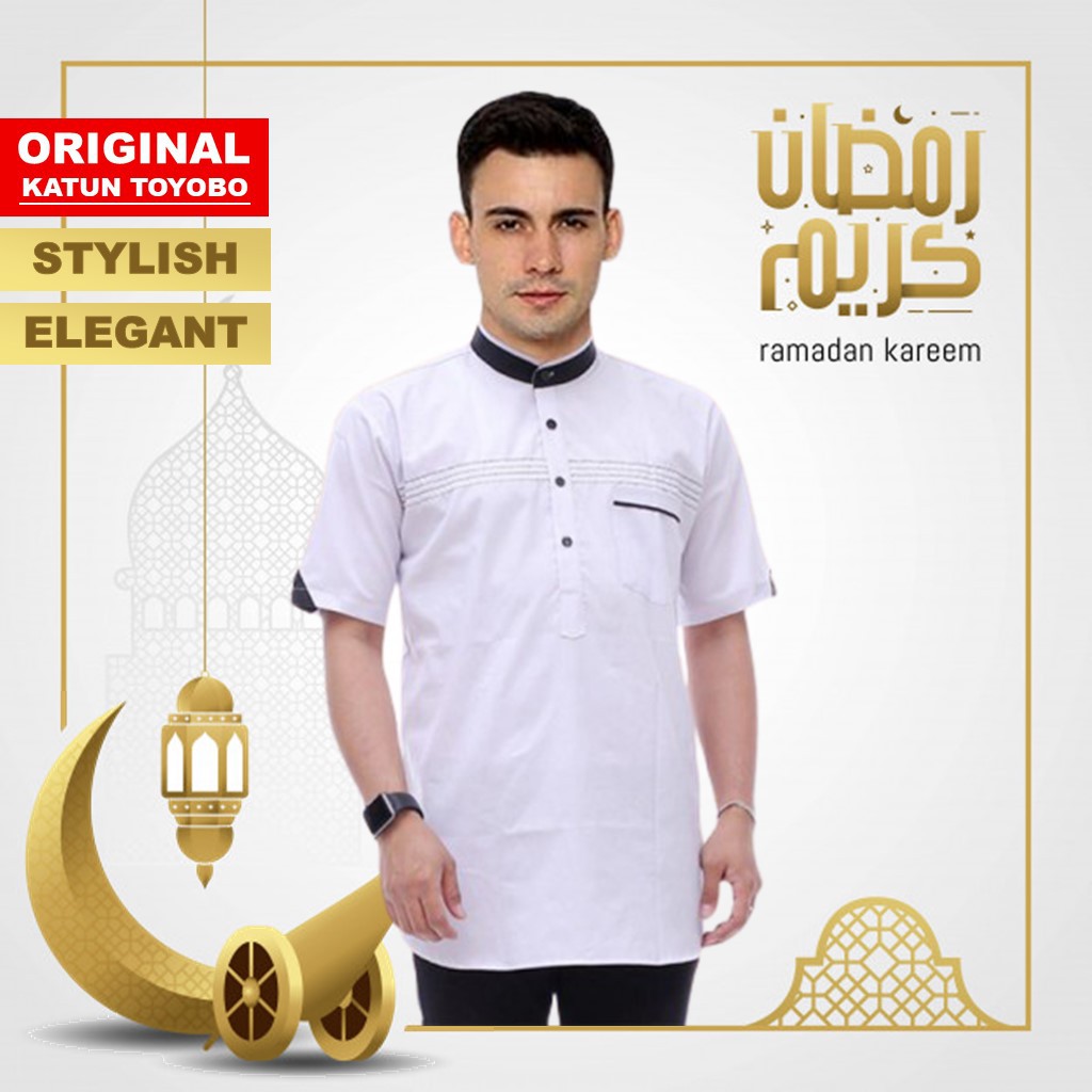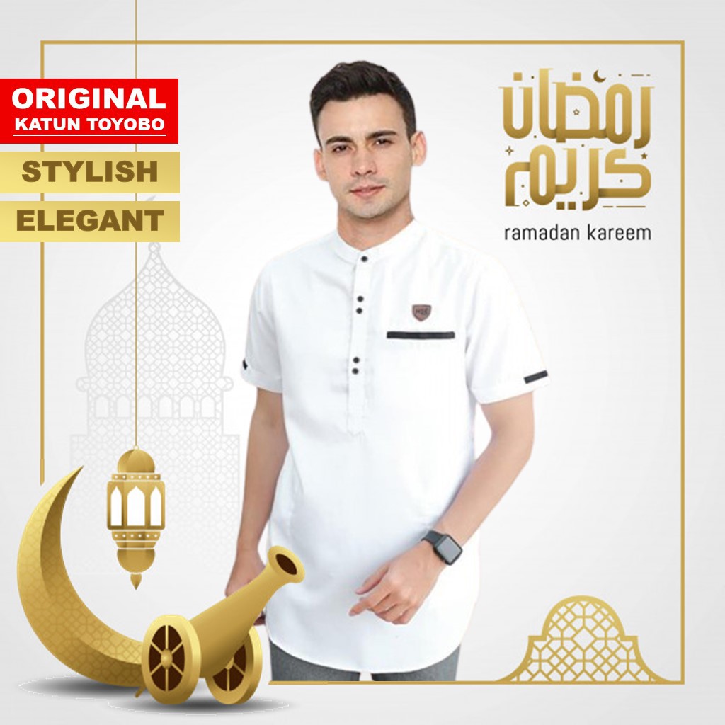 Baju Koko Pria Lengan Pendek Putih Muslim Kurta Dewasa Terbaru 2024