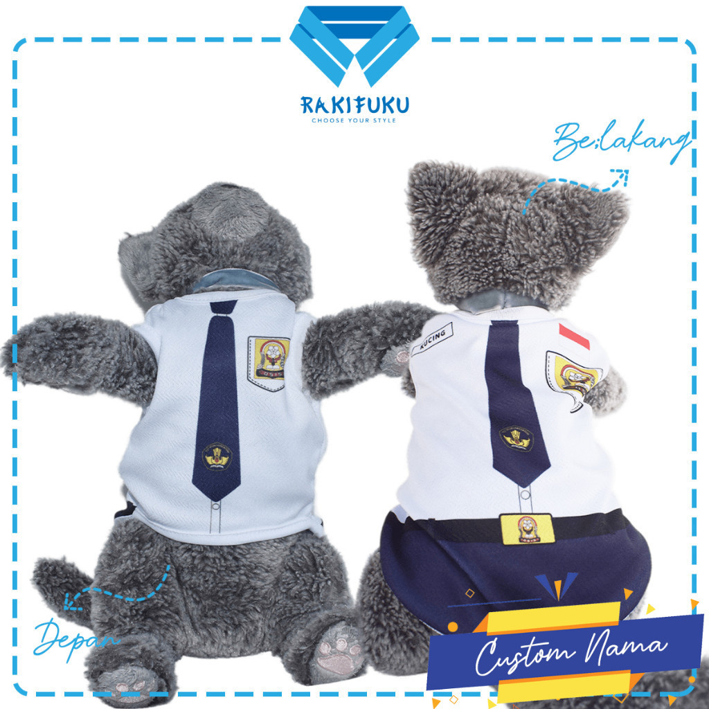 Baju Kucing Anjing Lucu Murah Motif Seragam Sekolah [BISA CUSTOM NAMA KUCINGMU] Cowo Cewe Jantan Betina Hewan Kecil